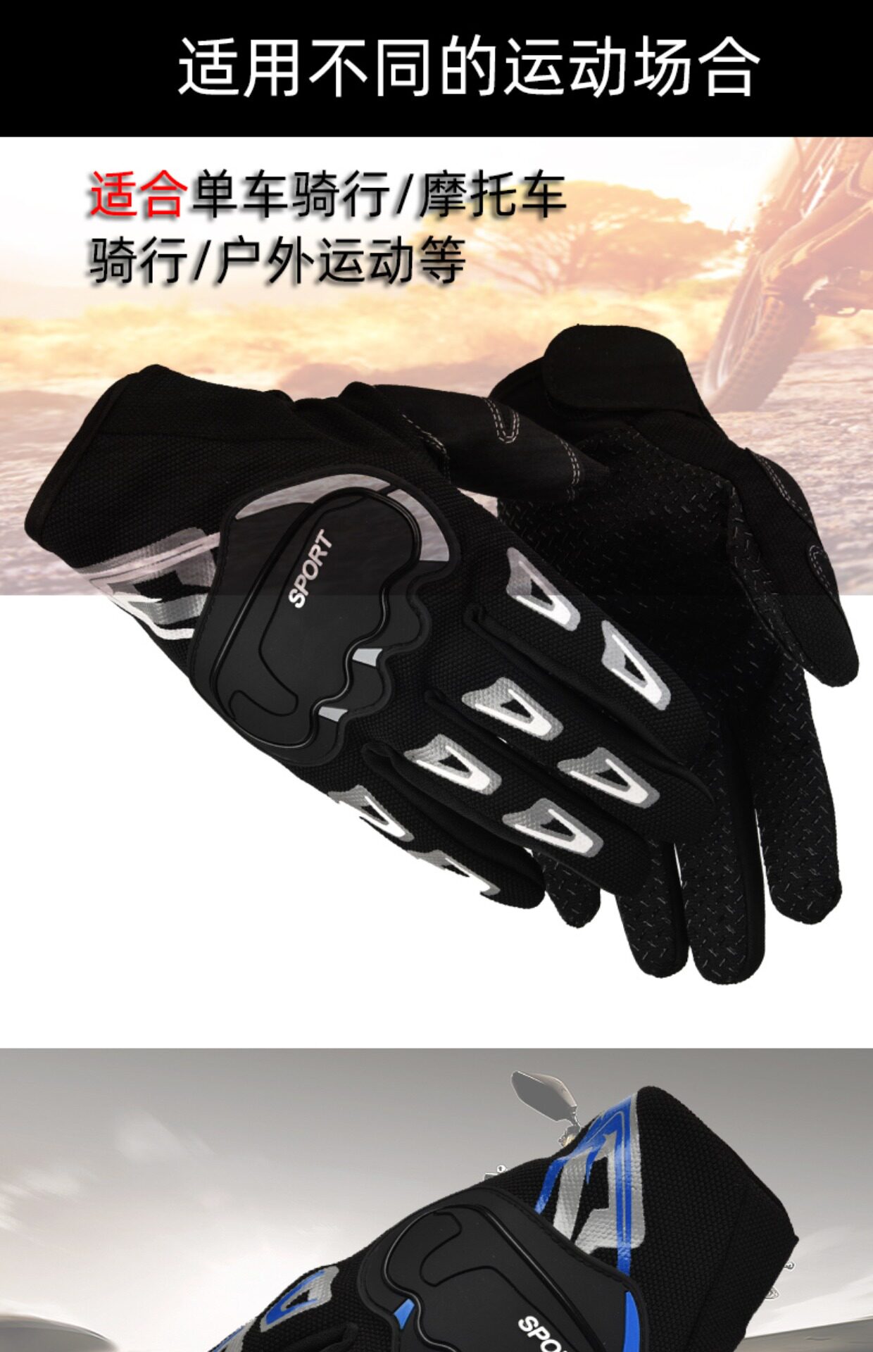 Летние тонкие дорожные перчатки, дышащий нескользящий износостойкий гоночный автомобиль