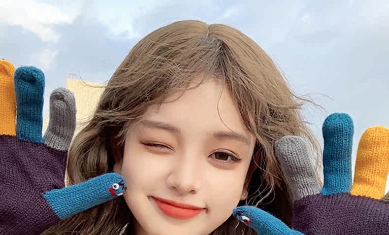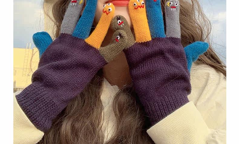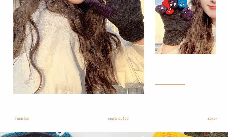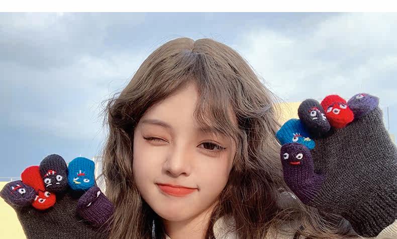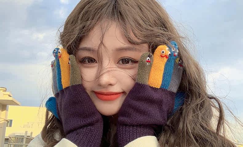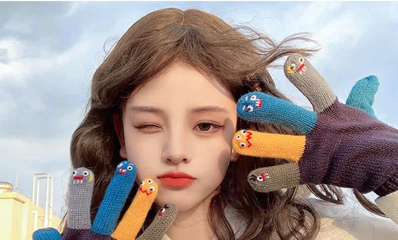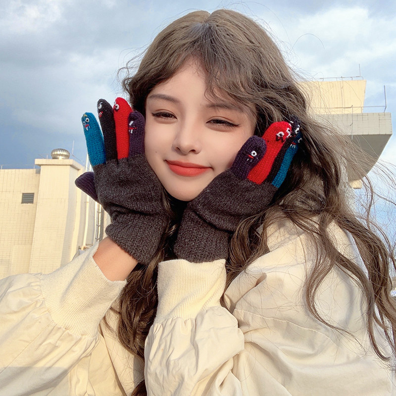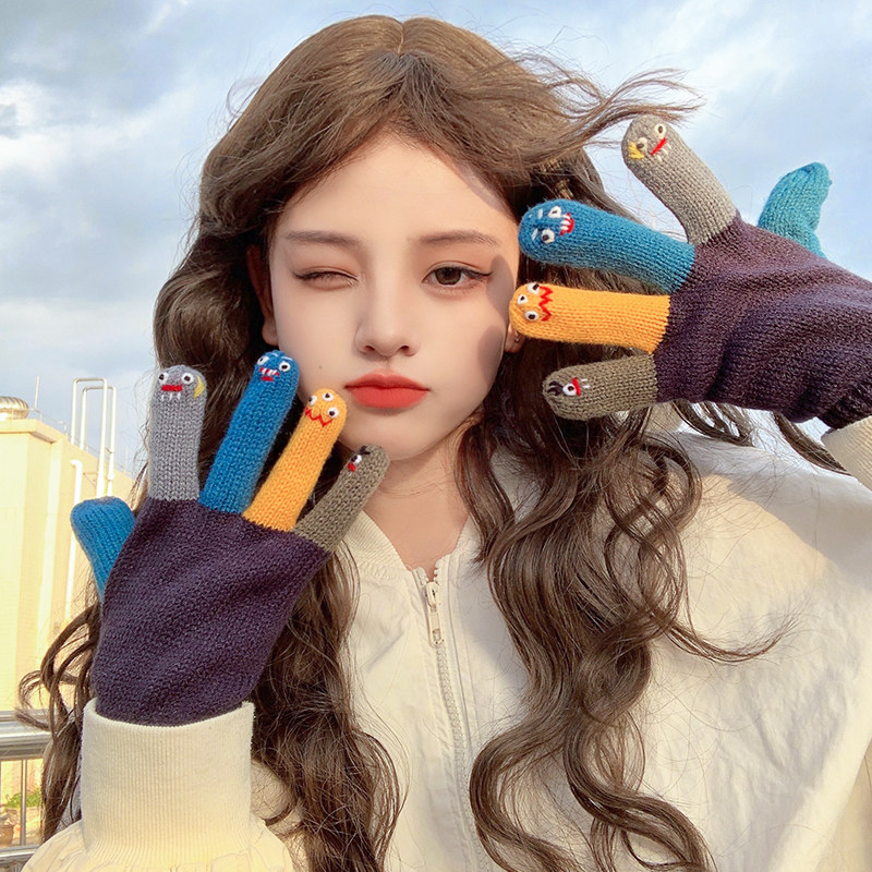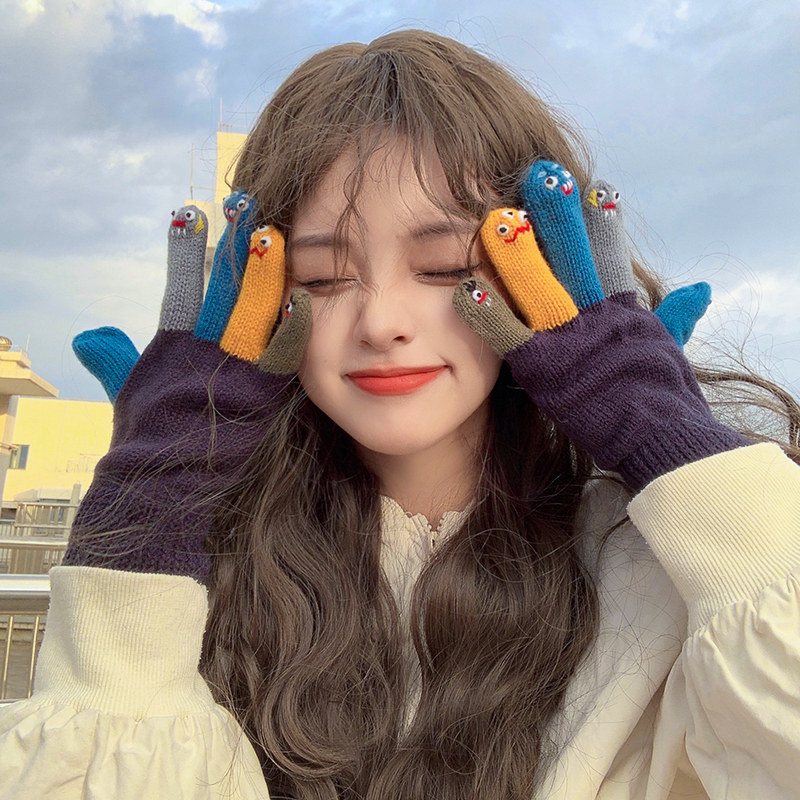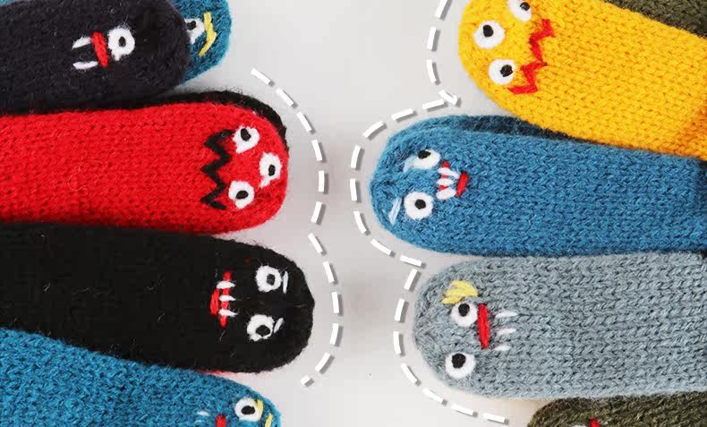Милые трикотажные демисезонные креативные перчатки ручной работы