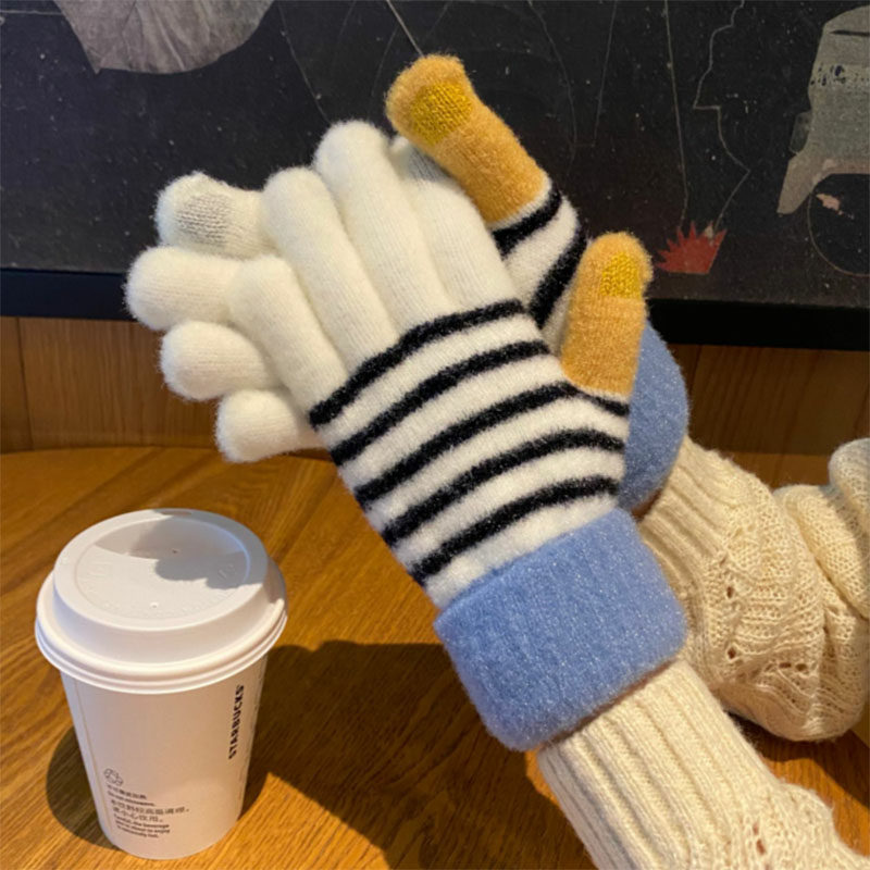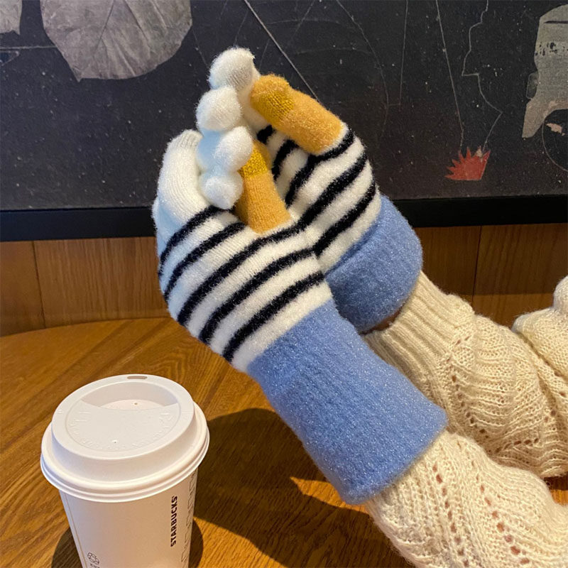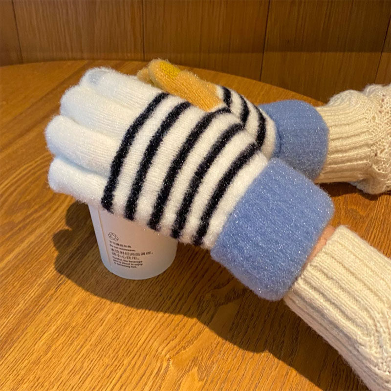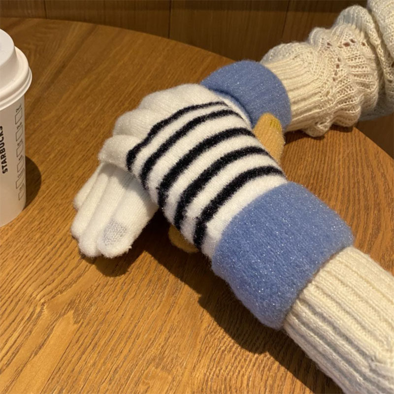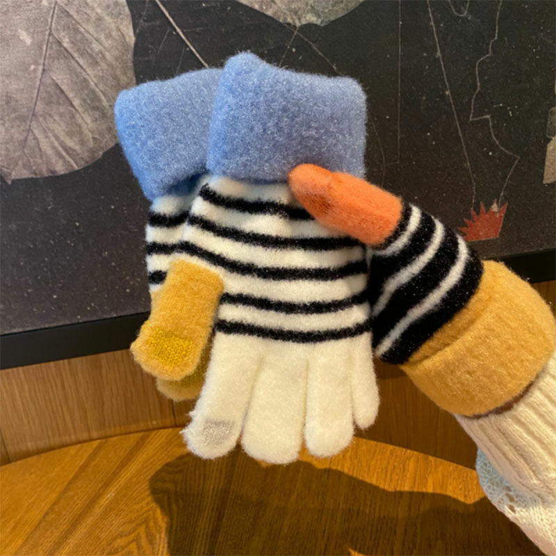 Перчатки, брендовый зимний флисовый удерживающий тепло милый комплект для школьников и студентов, увеличенная толщина
