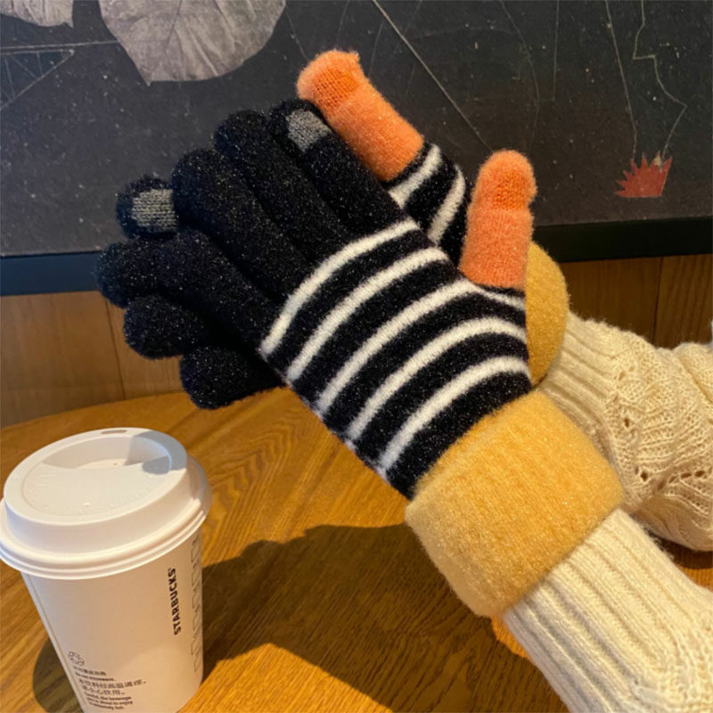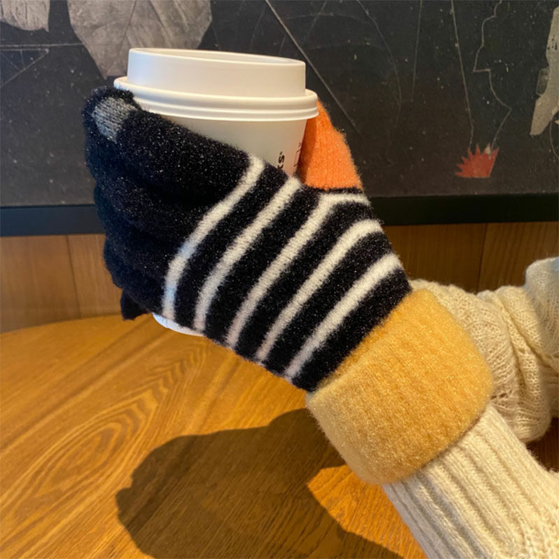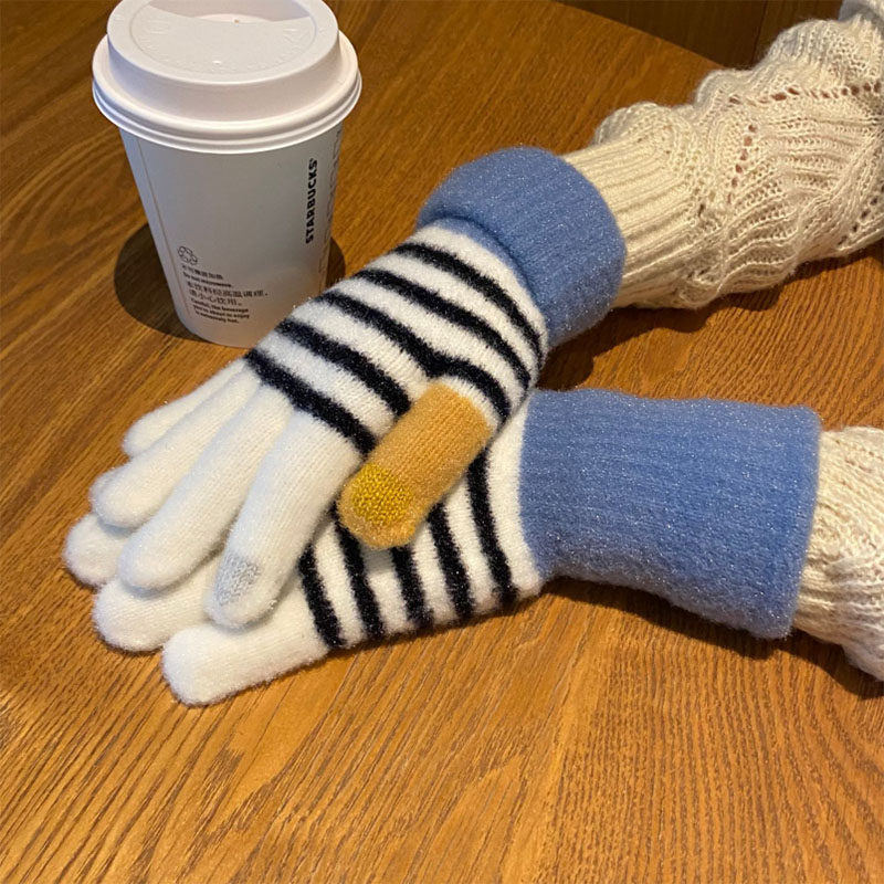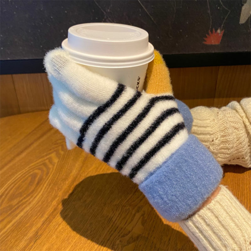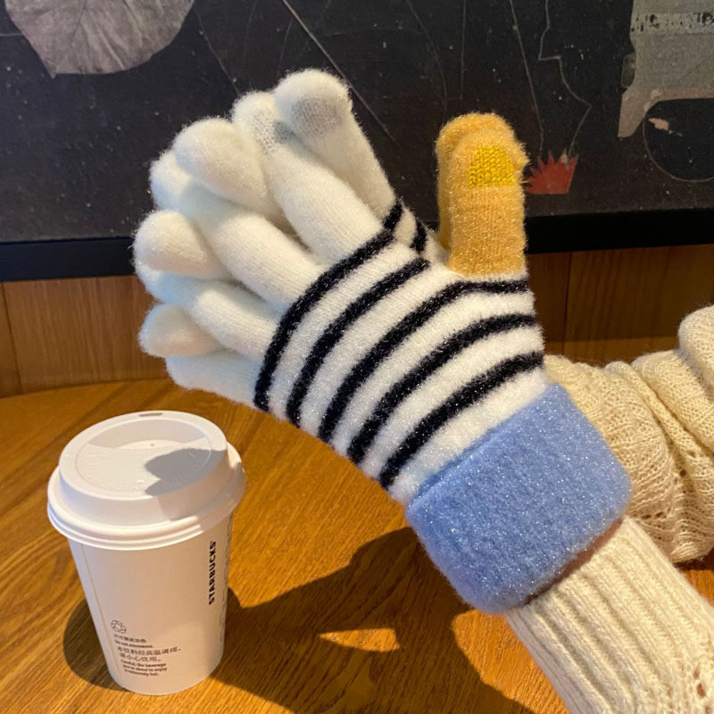 Перчатки, брендовый зимний флисовый удерживающий тепло милый комплект для школьников и студентов, увеличенная толщина