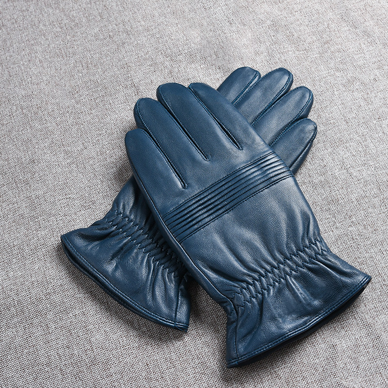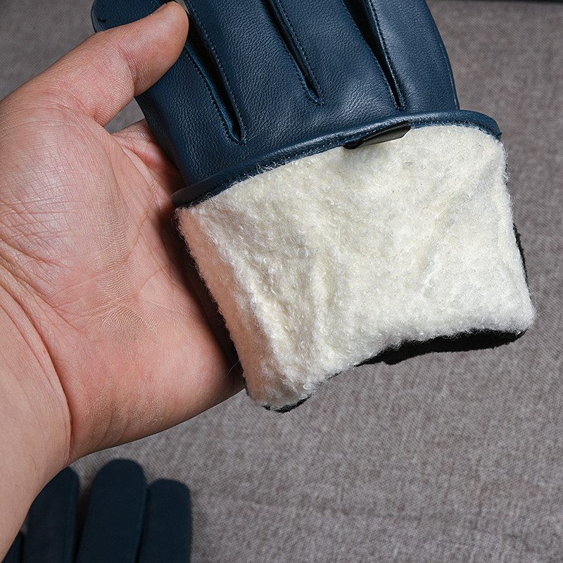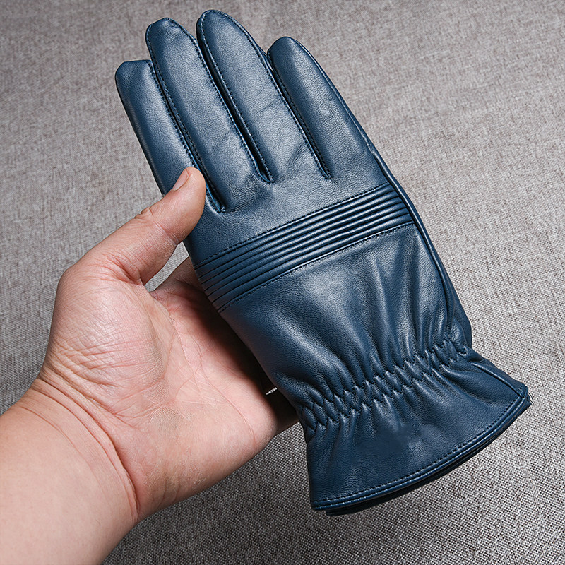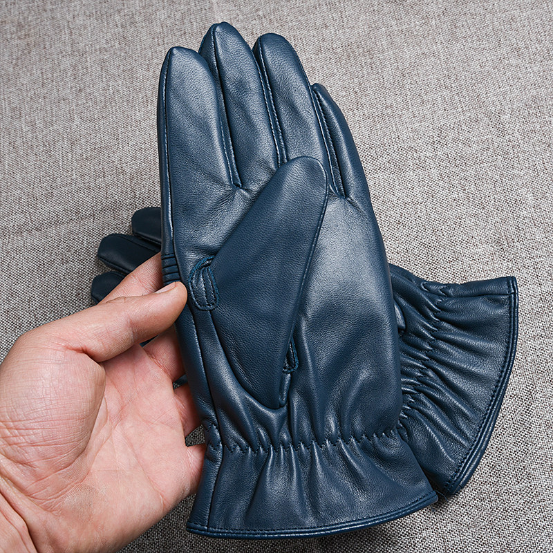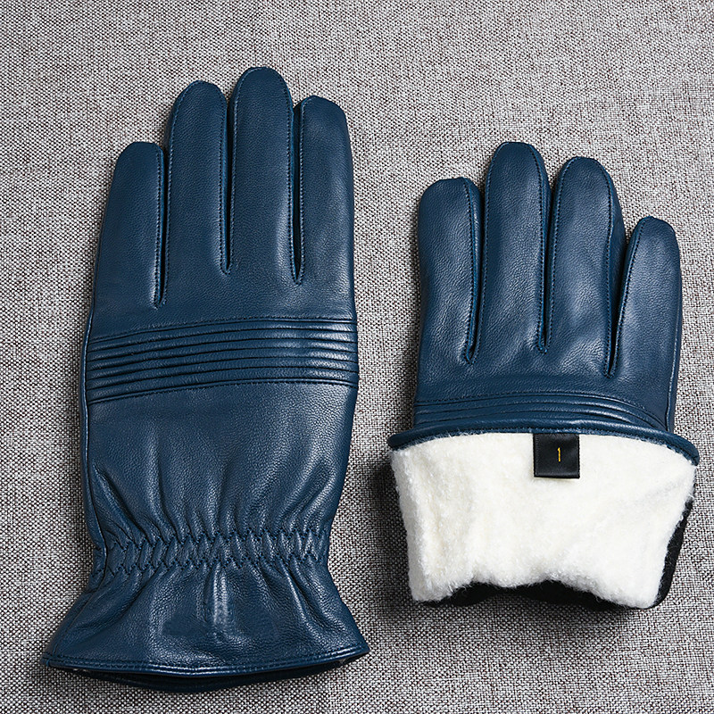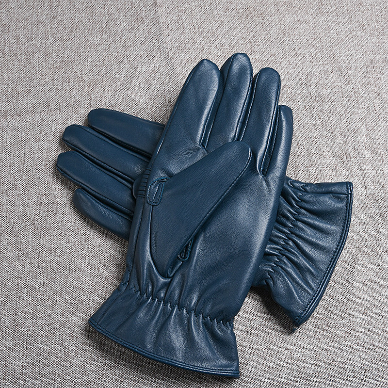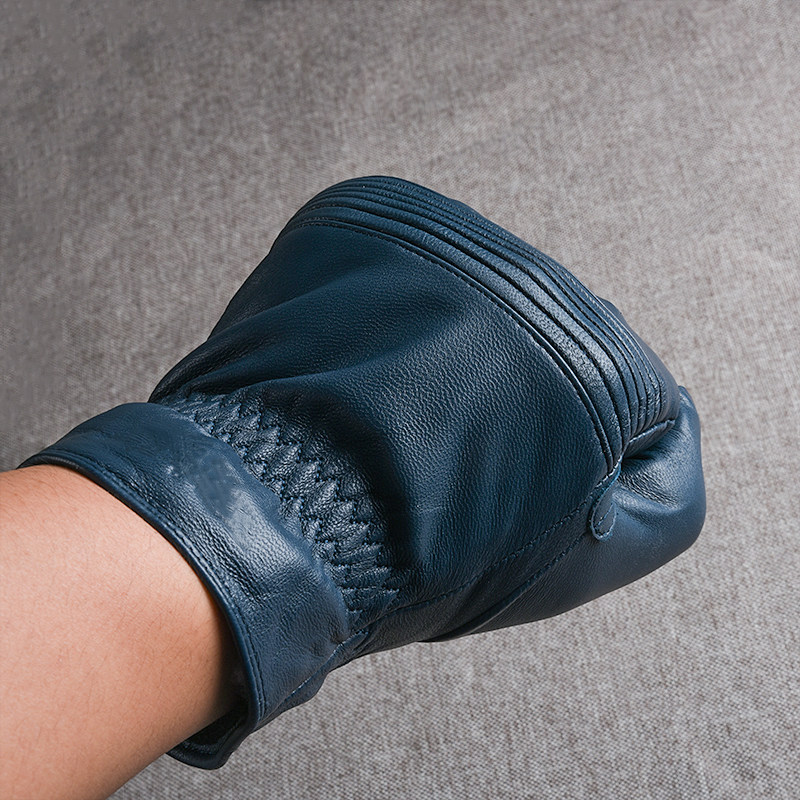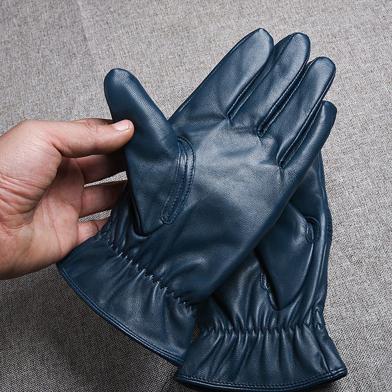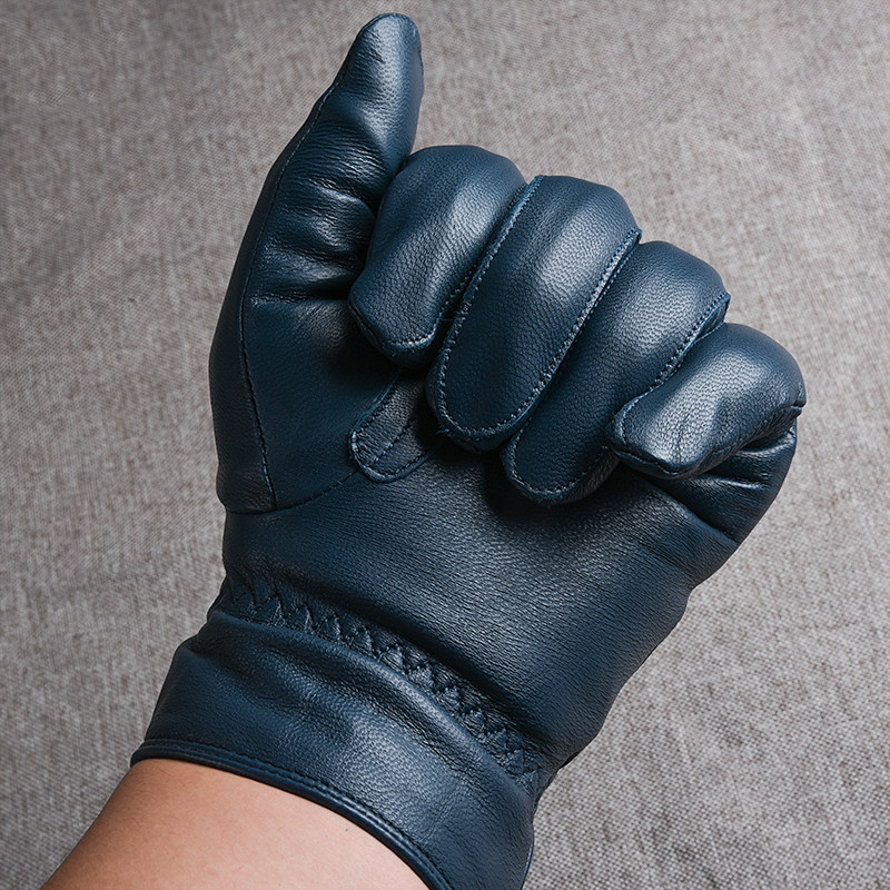 Синие дорожные ветрозащитные удерживающие тепло перчатки, из натуральной кожи