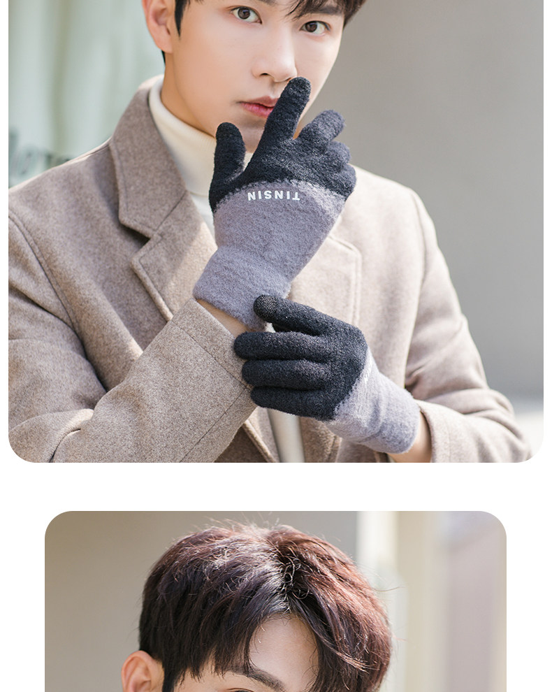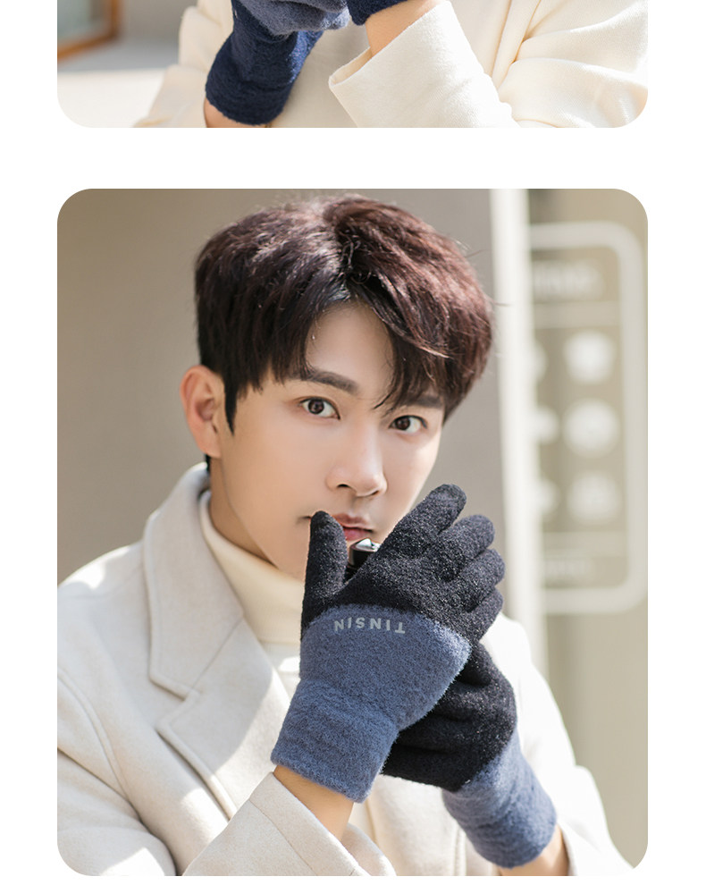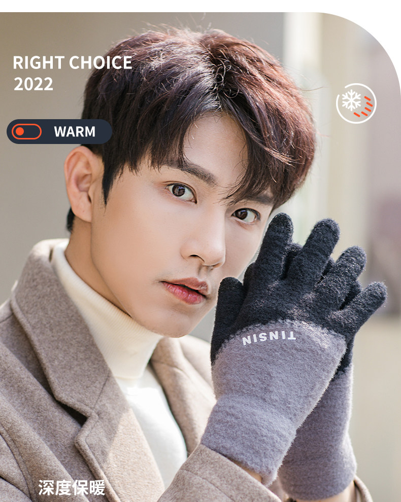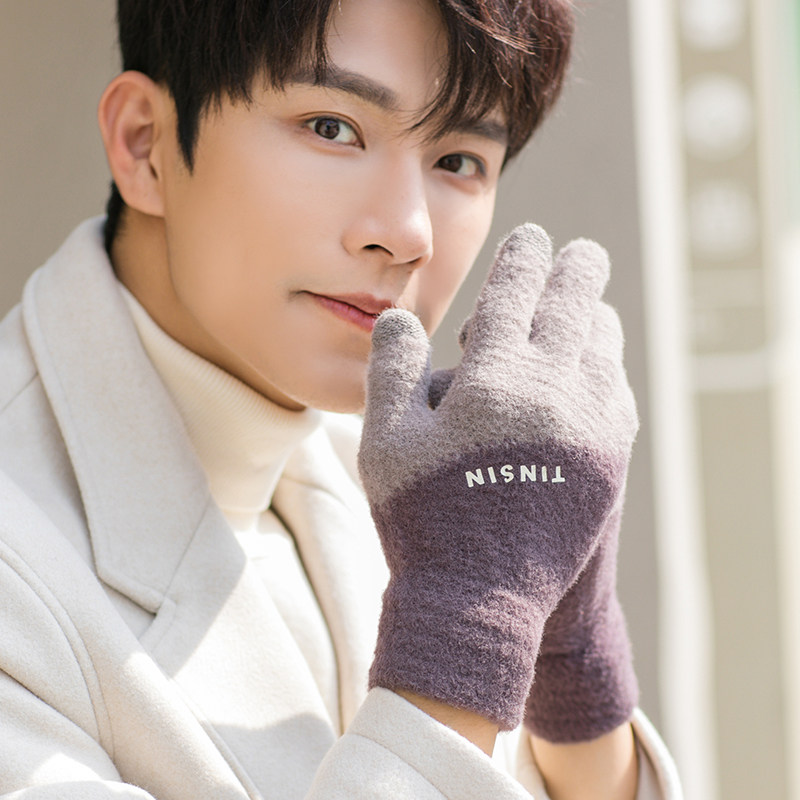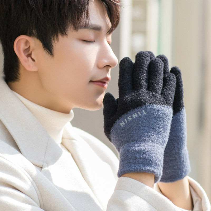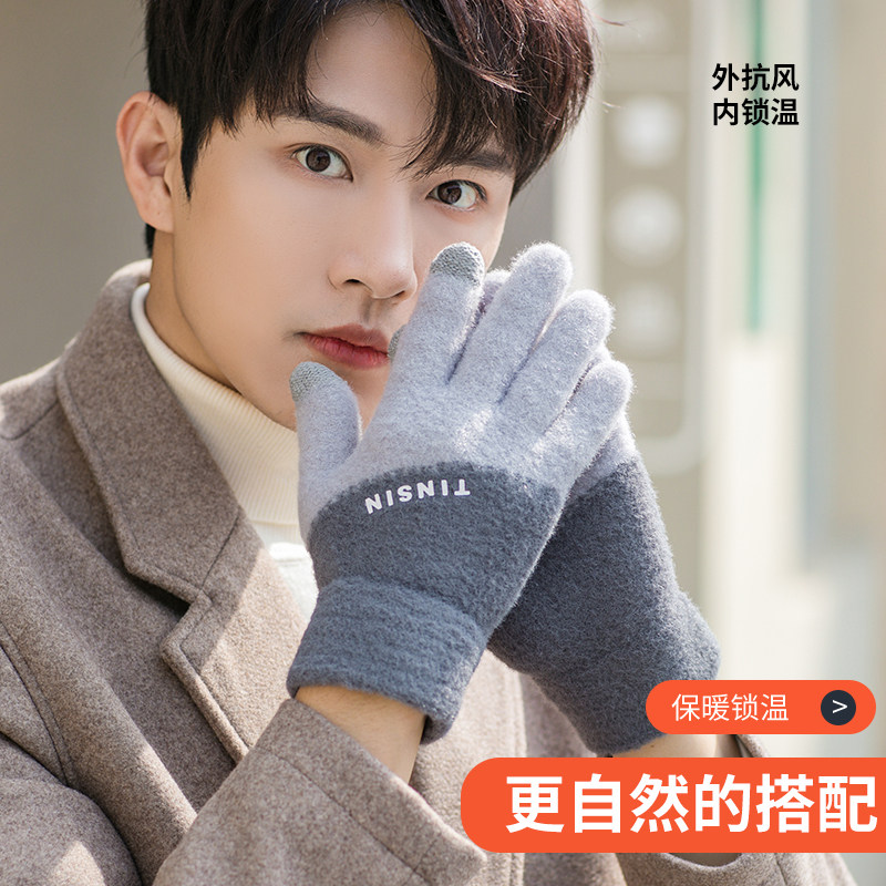Мужские трендовые зимние удерживающие тепло перчатки для школьников и студентов, зимний бархатный шерстяной комплект, увеличенная толщина