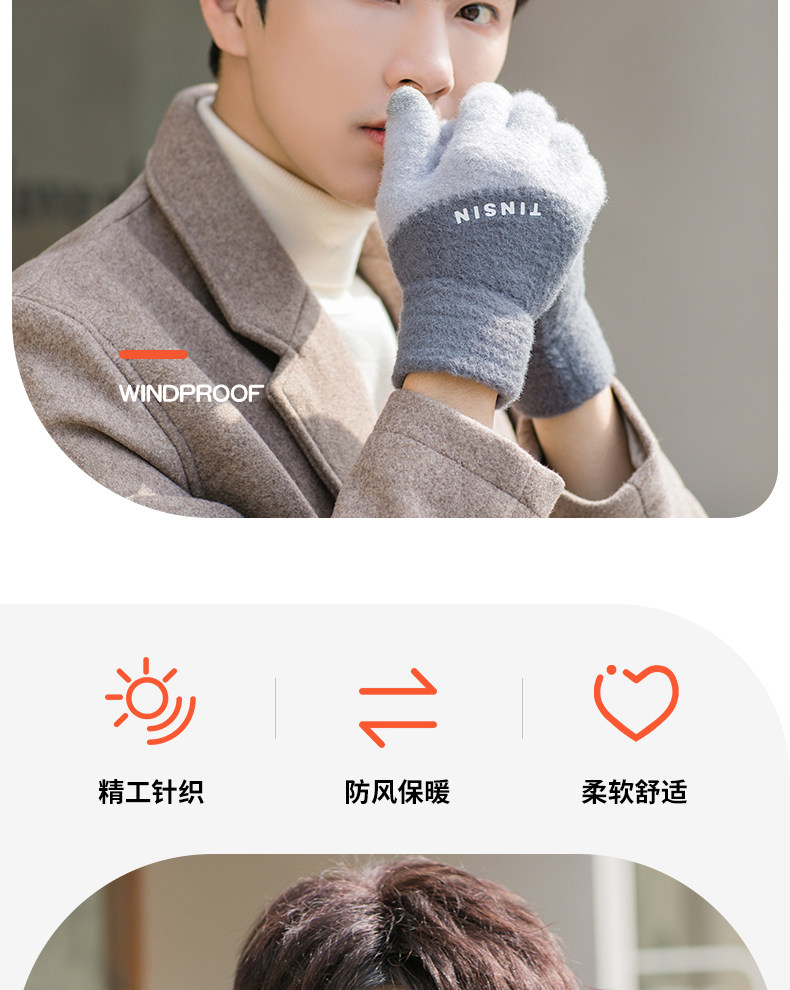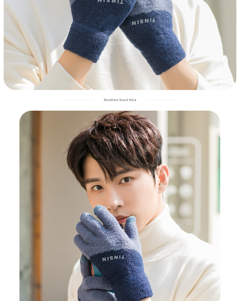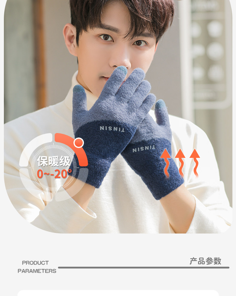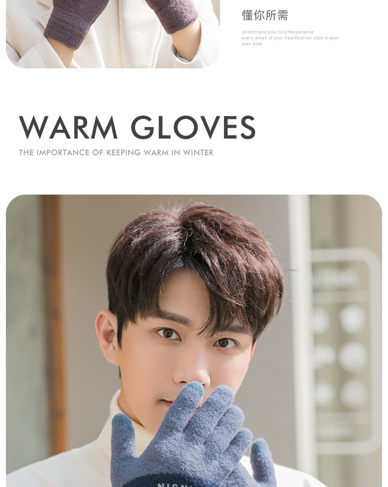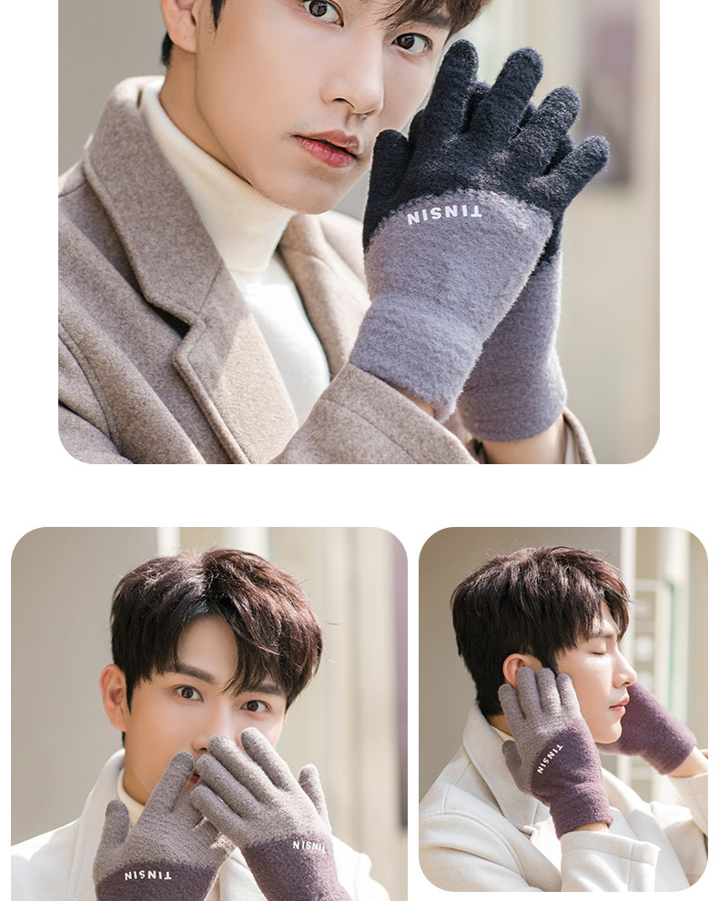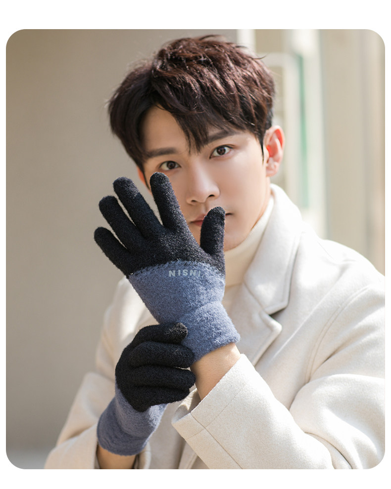 Мужские трендовые зимние удерживающие тепло перчатки для школьников и студентов, зимний бархатный шерстяной комплект, увеличенная толщина