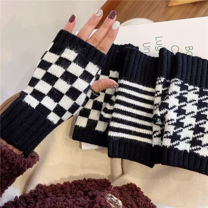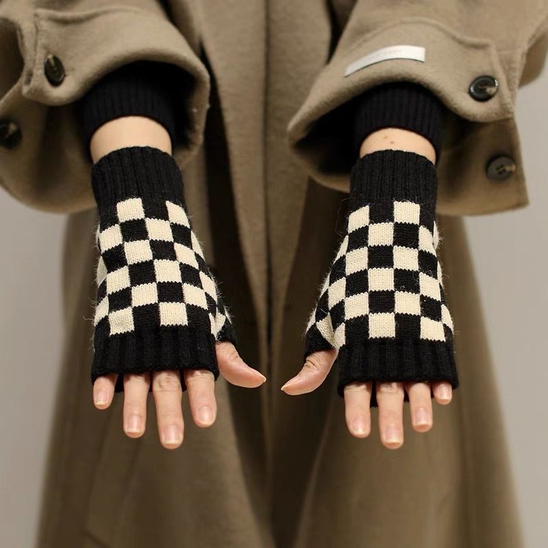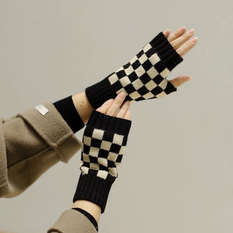 Шахматы, трикотажные демисезонные перчатки для влюбленных, крем для рук, без пальцев