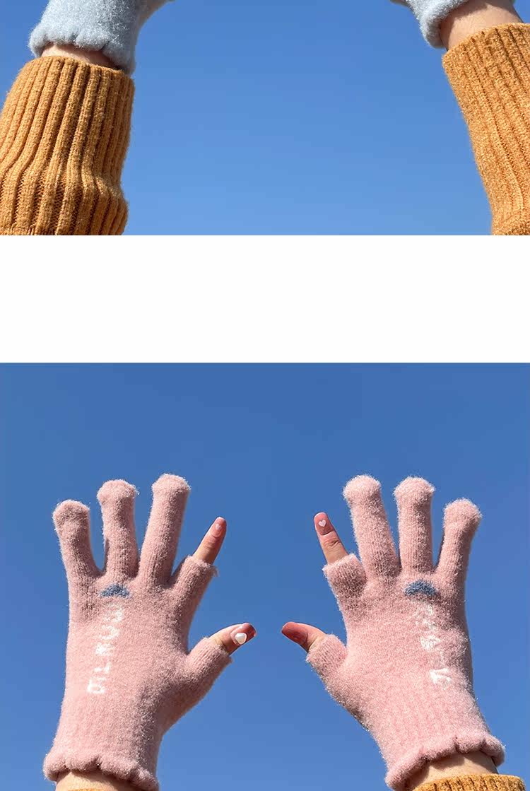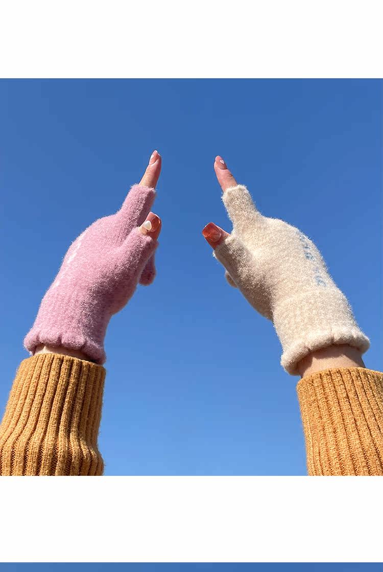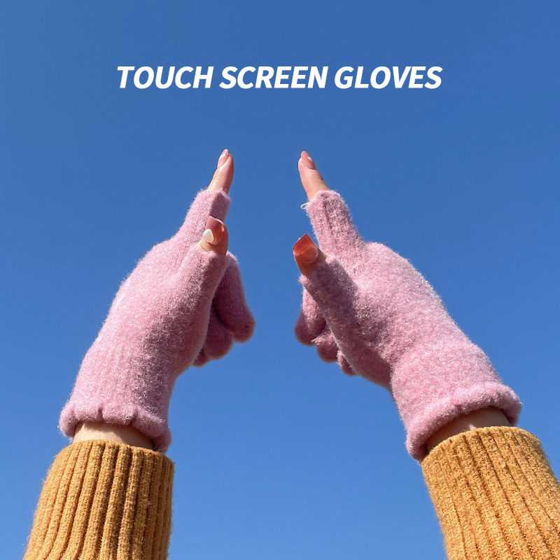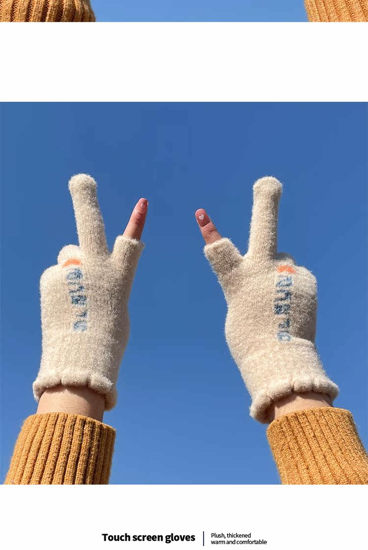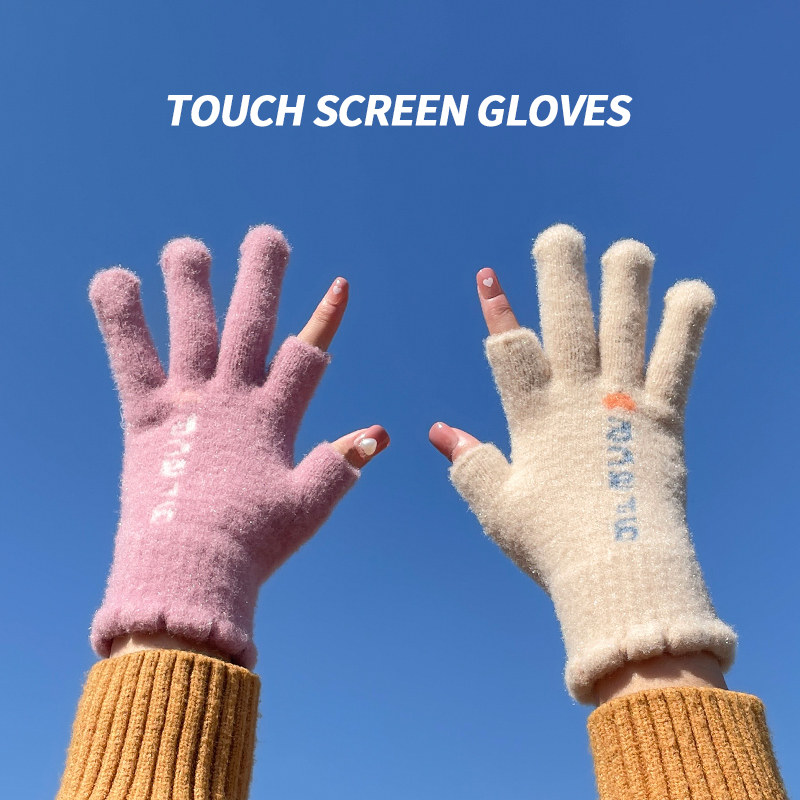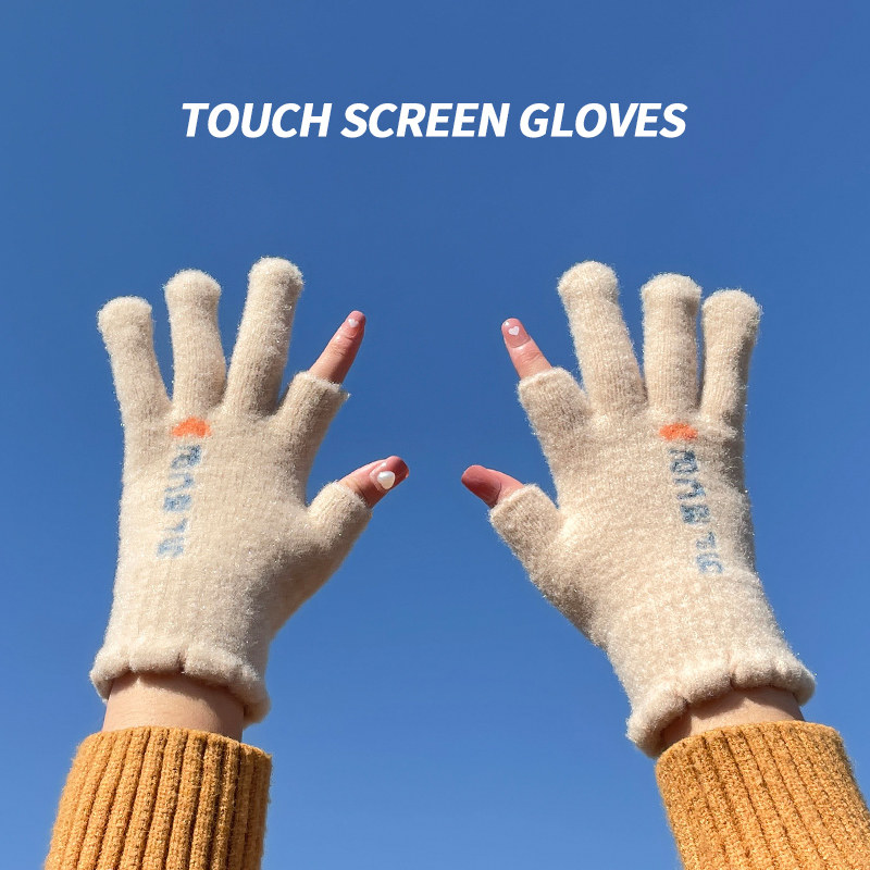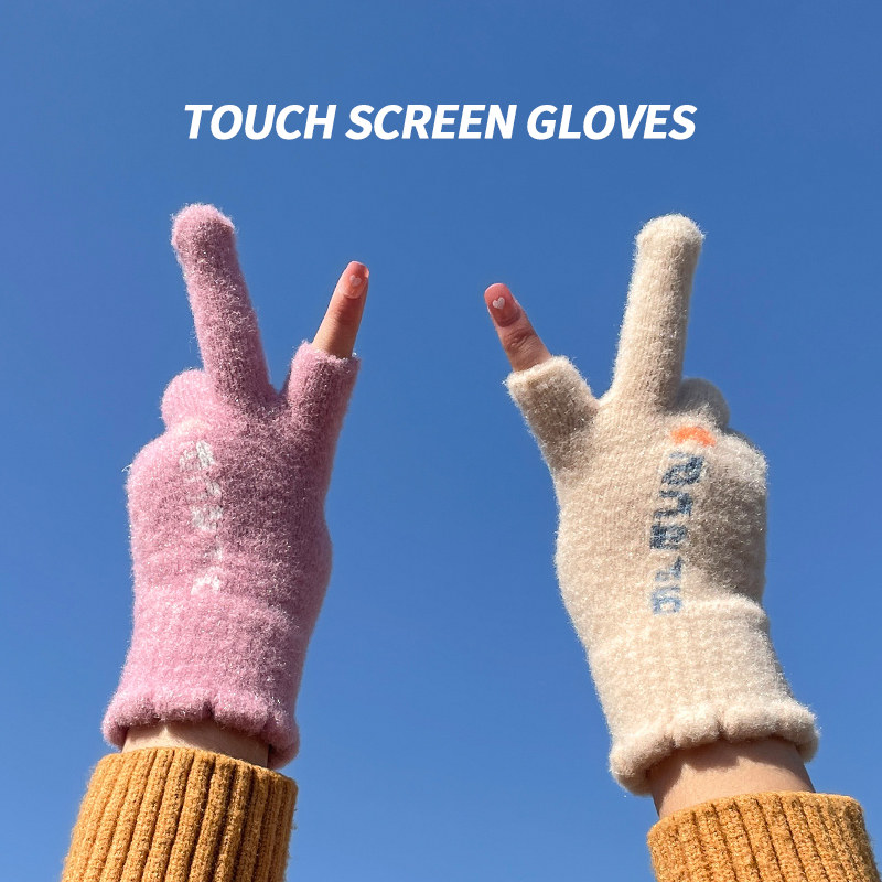 Трикотажные шерстяные перчатки, зимний универсальный милый удерживающий тепло ветрозащитный комплект для школьников и студентов, в корейском стиле, увеличенная толщина