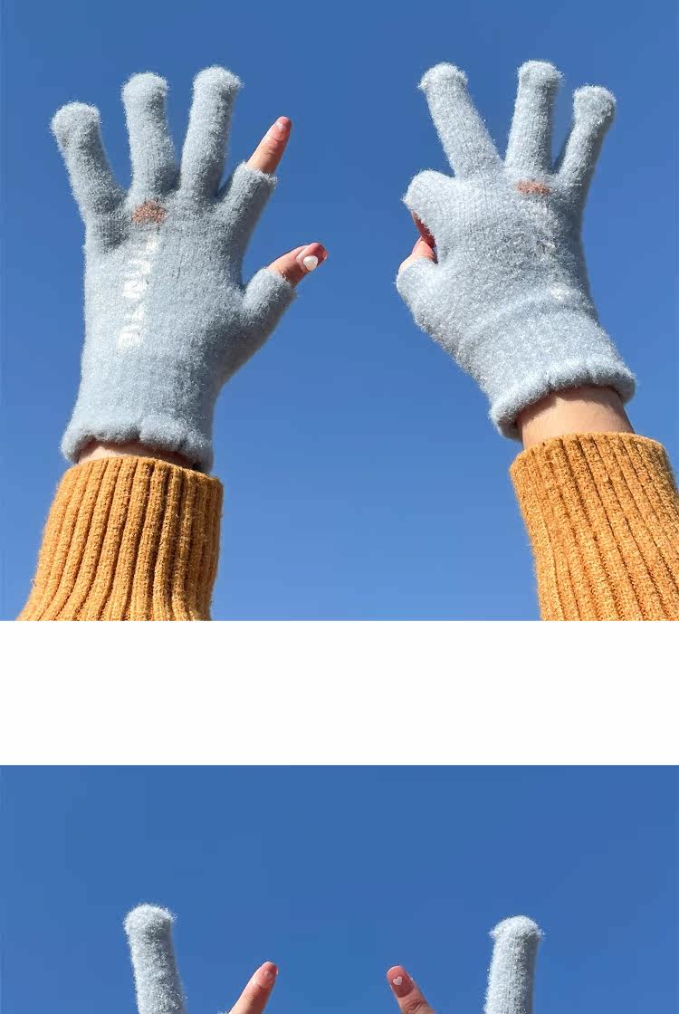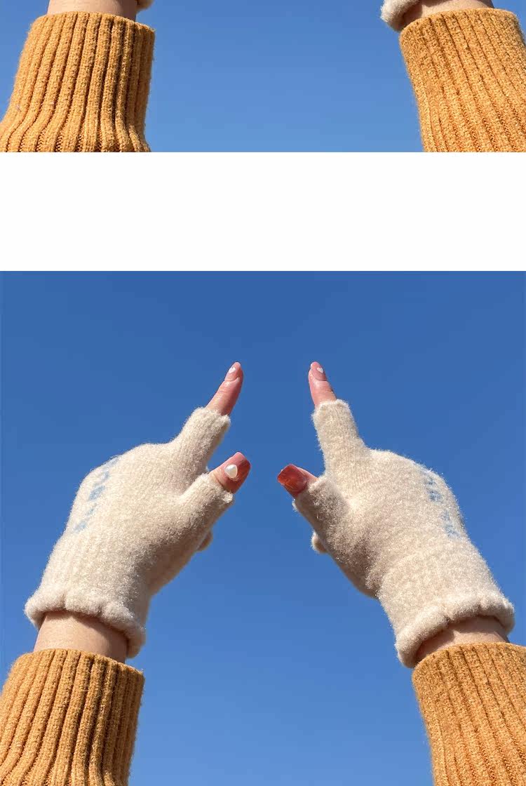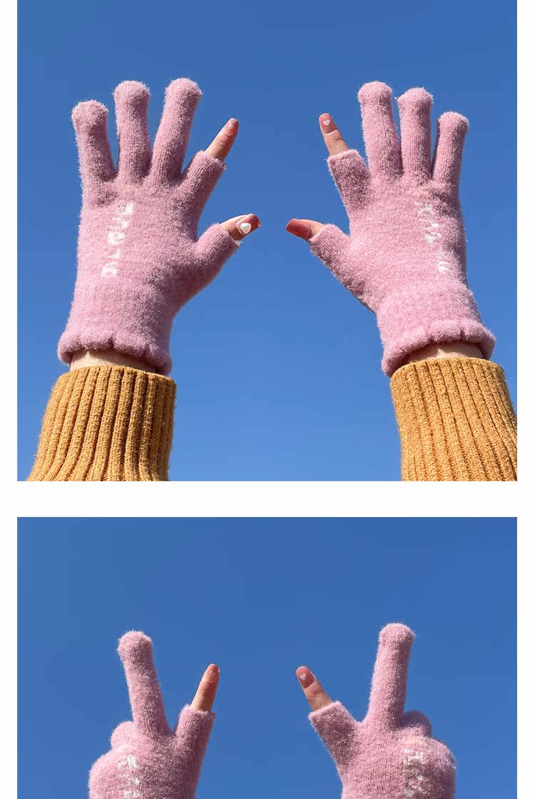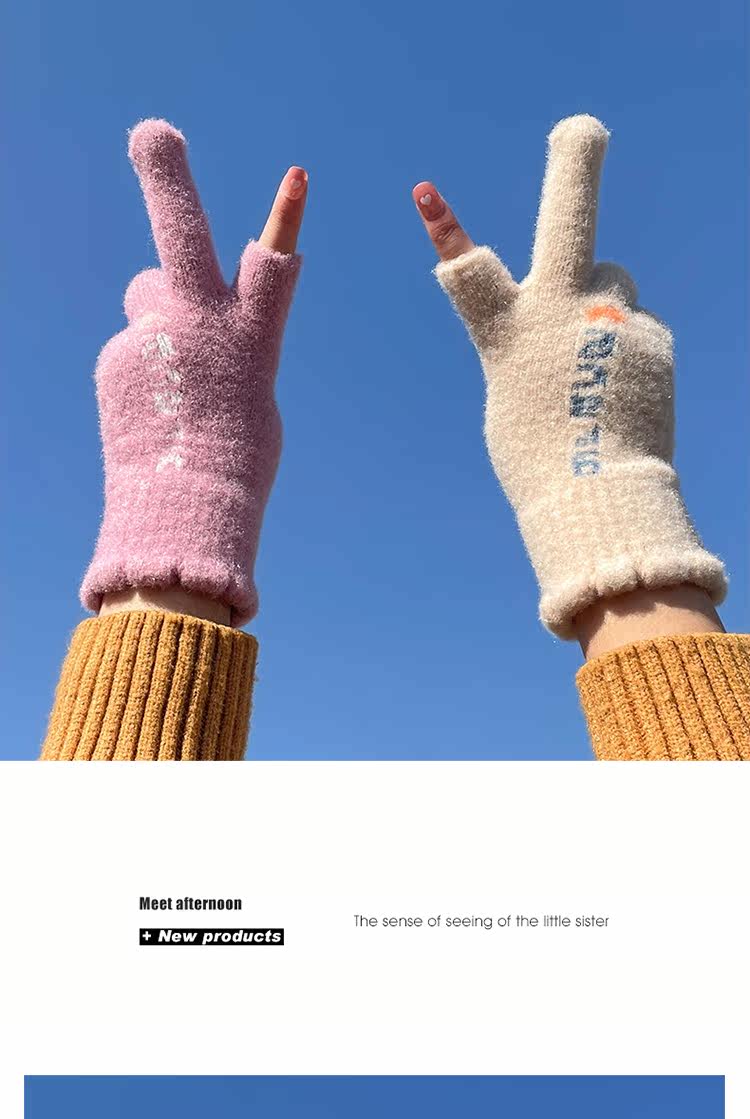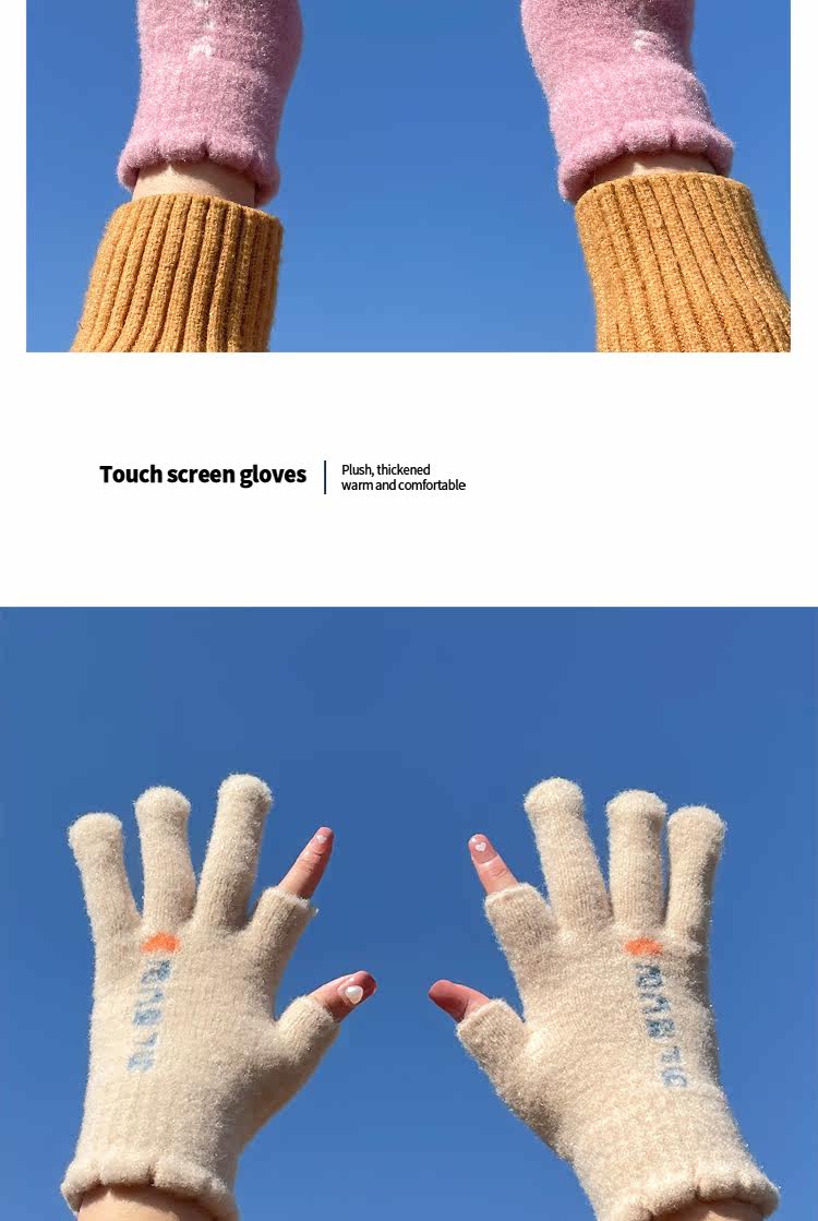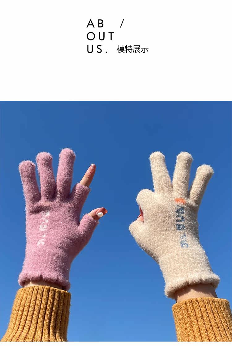 Трикотажные шерстяные перчатки, зимний универсальный милый удерживающий тепло ветрозащитный комплект для школьников и студентов, в корейском стиле, увеличенная толщина
