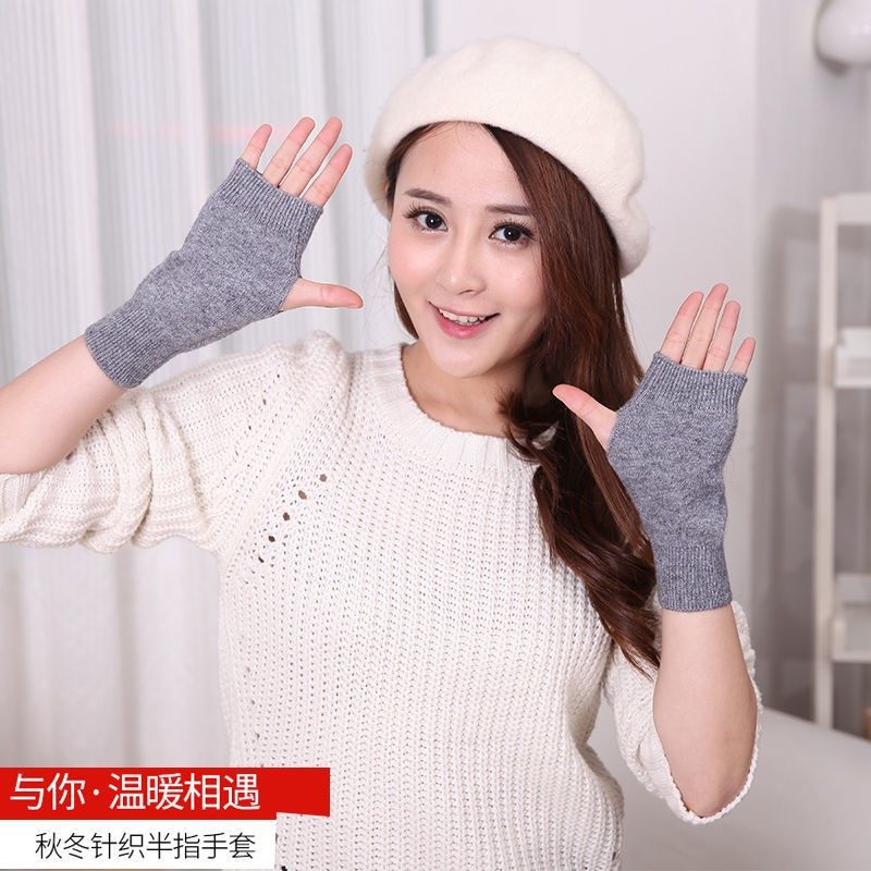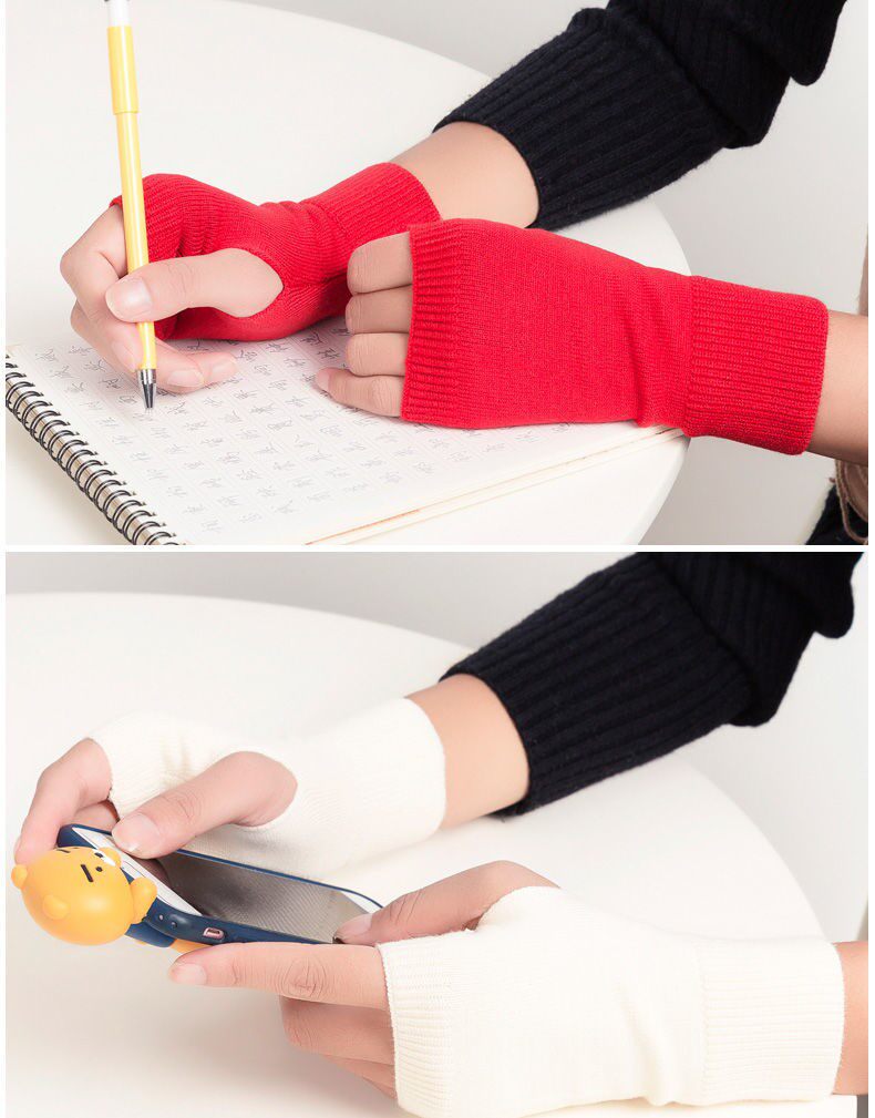Демисезонные милые удерживающие тепло короткие трикотажные перчатки подходит для мужчин и женщин для влюбленных, без пальцев, в корейском стиле