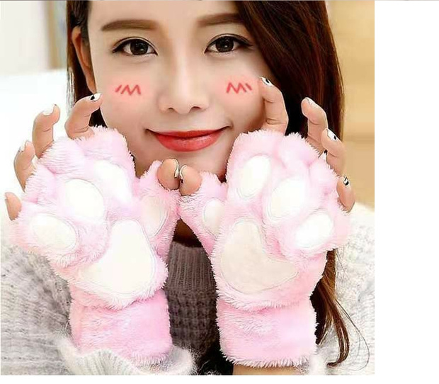 Перчатки, утепленный мультяшный брендовый удерживающий тепло комплект, без пальцев, в корейском стиле