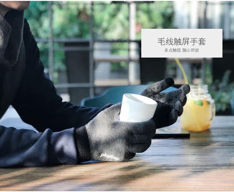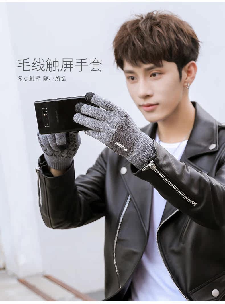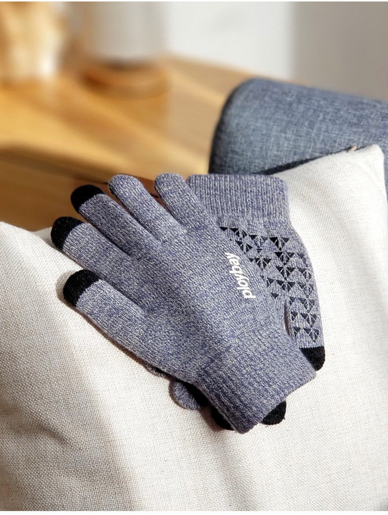 Мужские демисезонные перчатки, удерживающий тепло нескользящий шерстяной комплект для школьников для влюбленных, увеличенная толщина