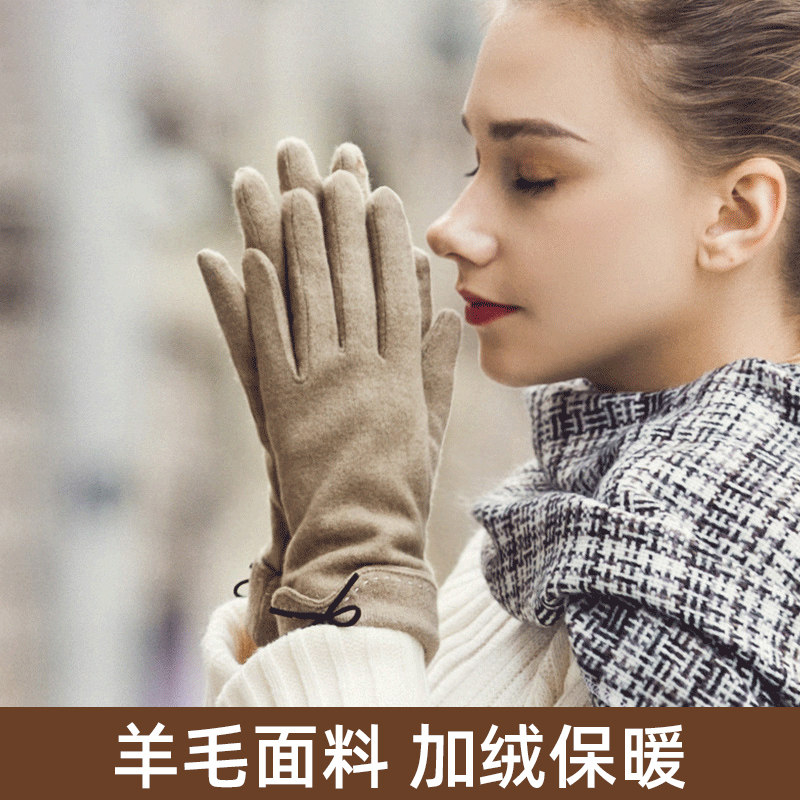 Зимние универсальные флисовые удерживающие тепло перчатки, дорожный милый шерстяной комплект, в корейском стиле