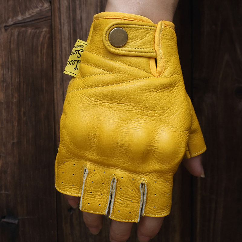 Летние кожаные дорожные износостойкие желтые ретро перчатки, без пальцев, из натуральной кожи, защита при падении