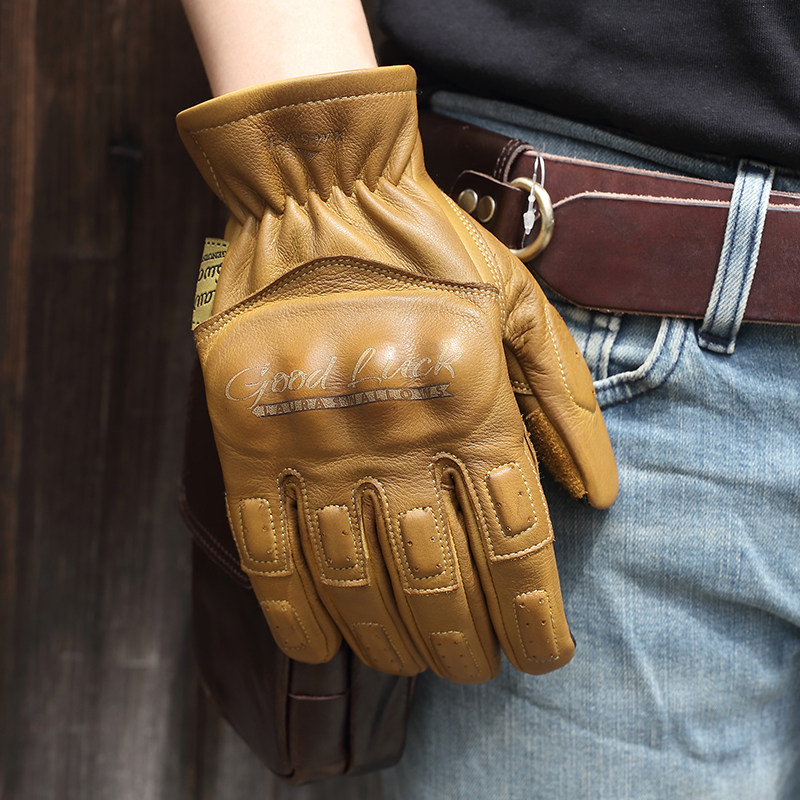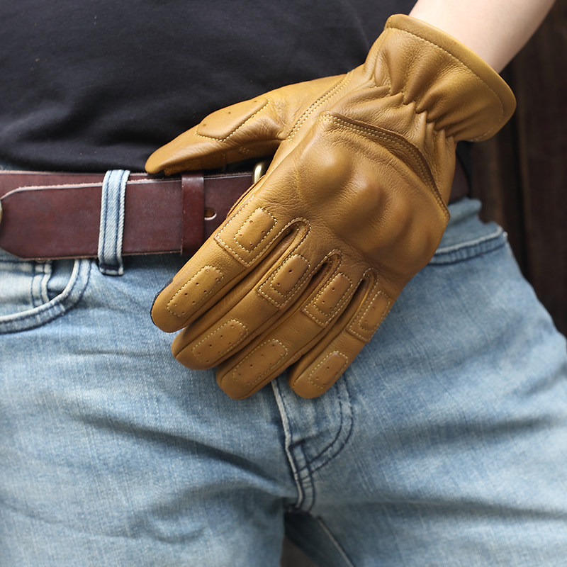 Мужские демисезонные перчатки, ретро дорожный кожаный электромобиль для велоспорта, из натуральной кожи, воловья кожа
