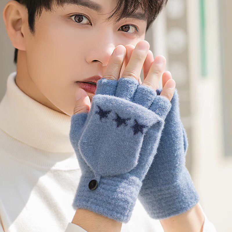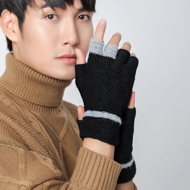 Зимние мужские трикотажные удерживающие тепло перчатки