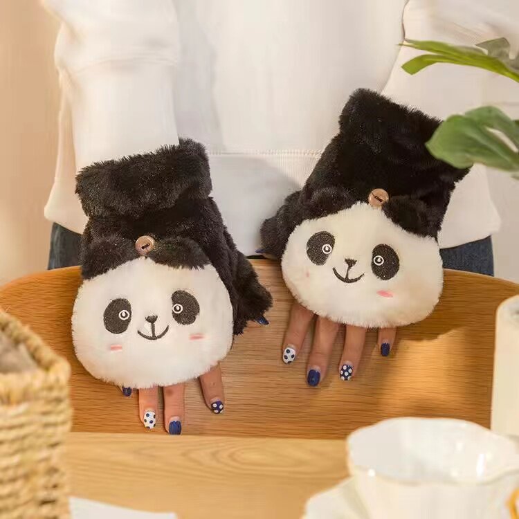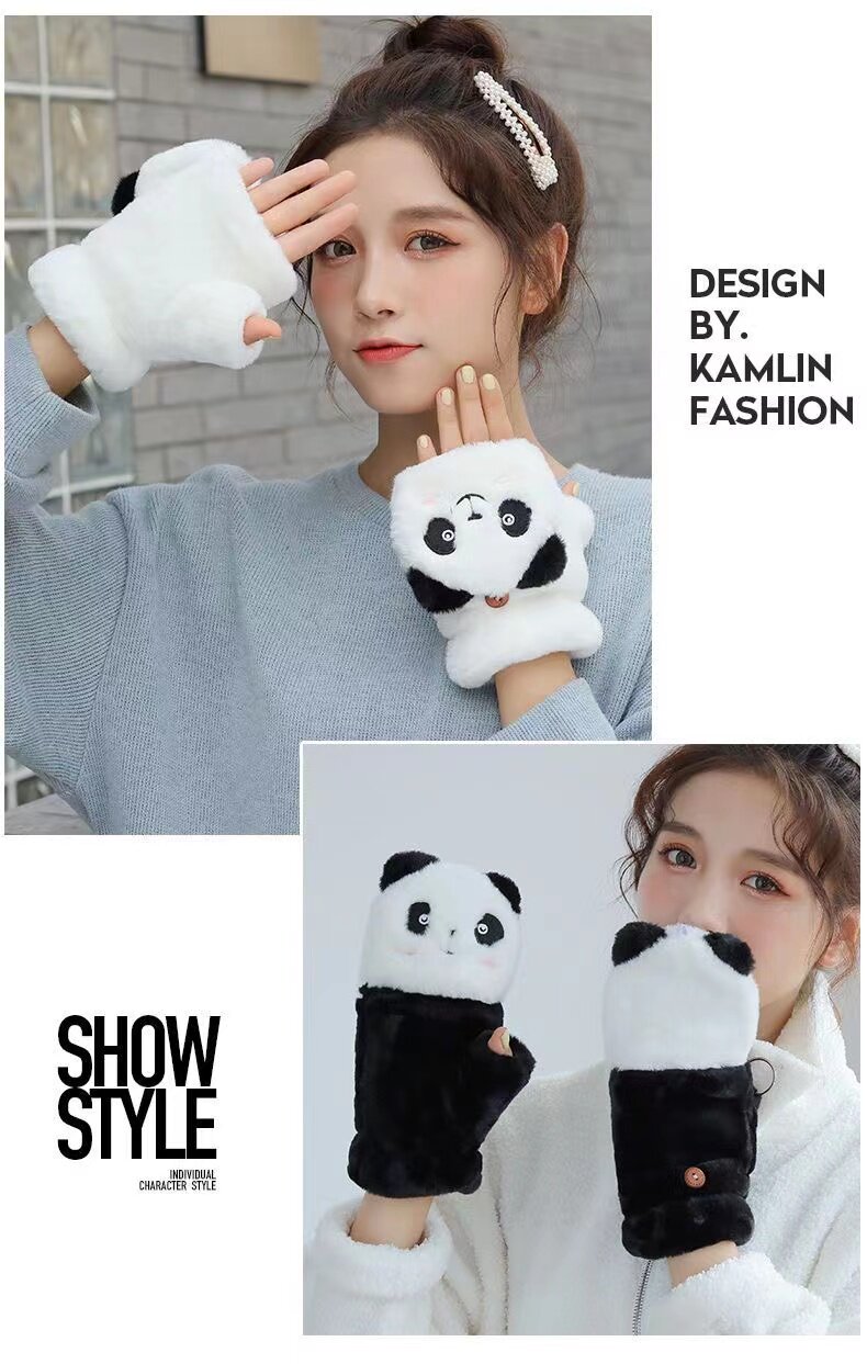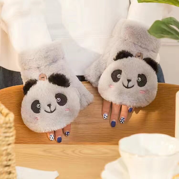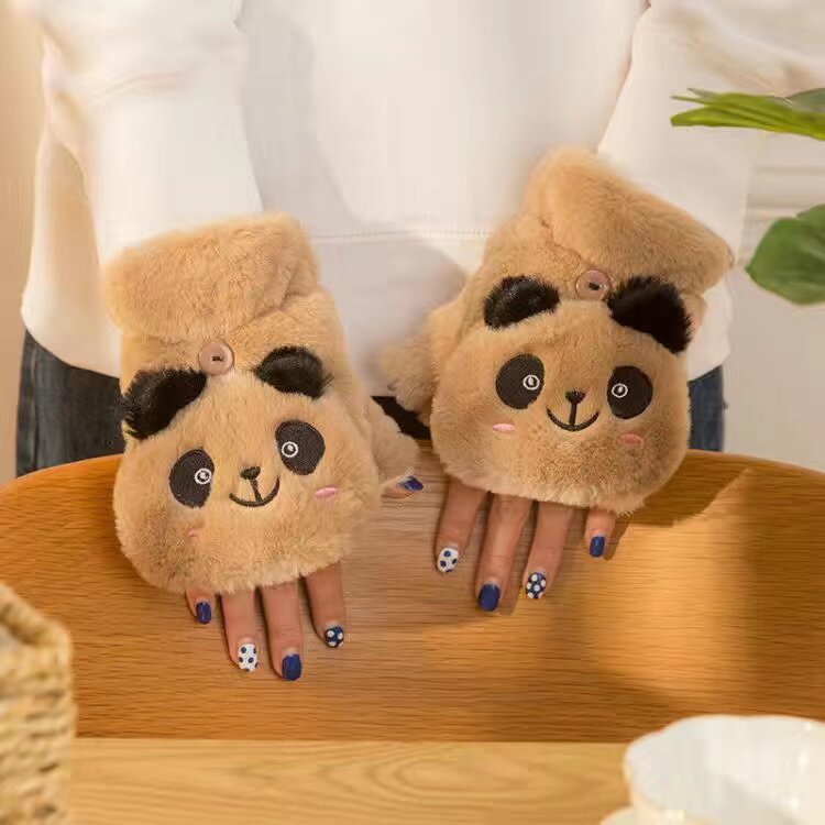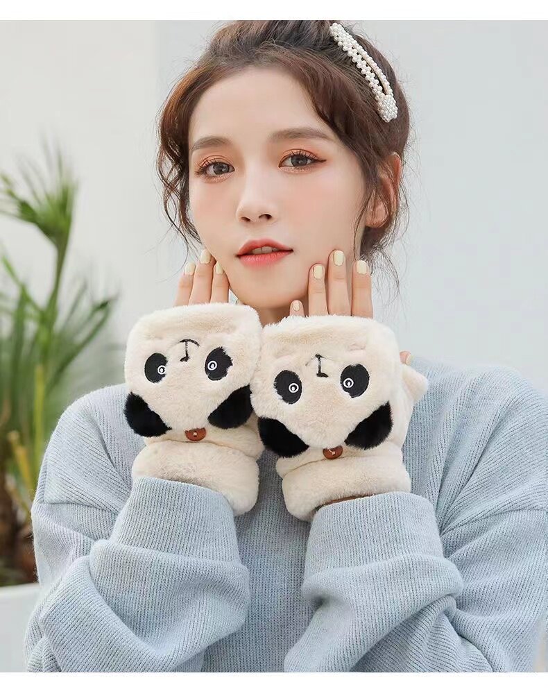 Перчатки, зимний милый брендовый мультяшный утепленный удерживающий тепло комплект для школьников, в корейском стиле, без пальцев