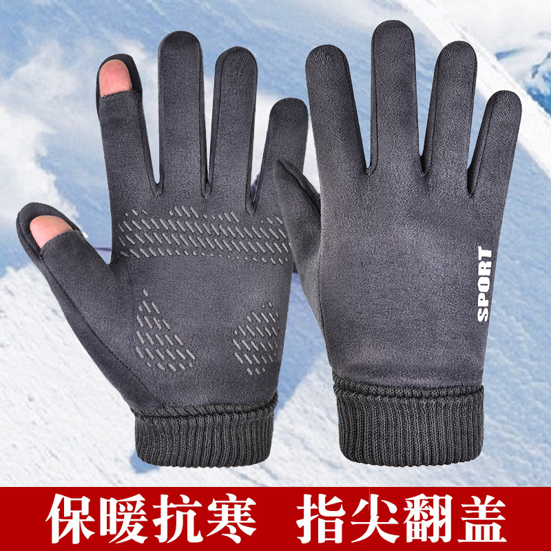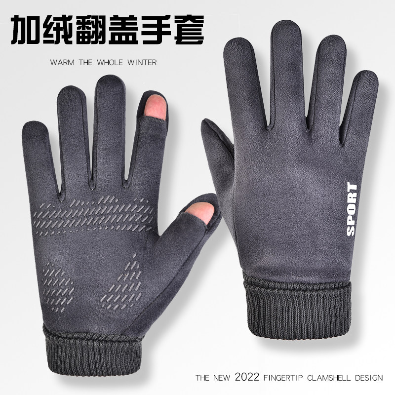 Flip замшевая перчатка мужская роса пальцы Qiu плюс бархатный теплый женский приводной сенсорный экран против Slip Takeaway Rider Winter Riding