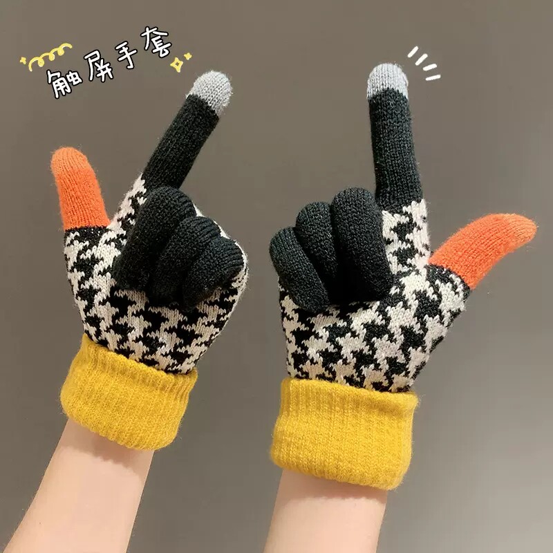 Демисезонные удерживающие тепло милые перчатки, брендовый трикотажный флисовый мобильный телефон для школьников и студентов, сенсорный экран