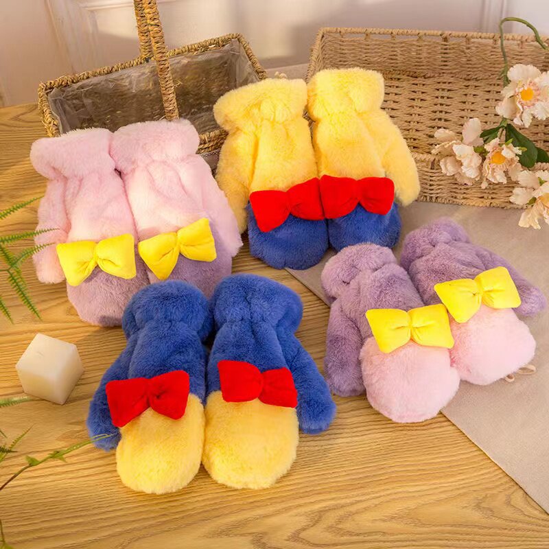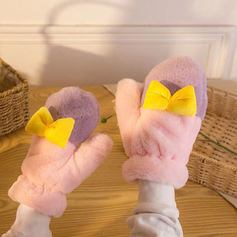 Перчатки, удерживающий тепло ветрозащитный милый утепленный мультяшный комплект для школьников, в корейском стиле, популярно в интернете
