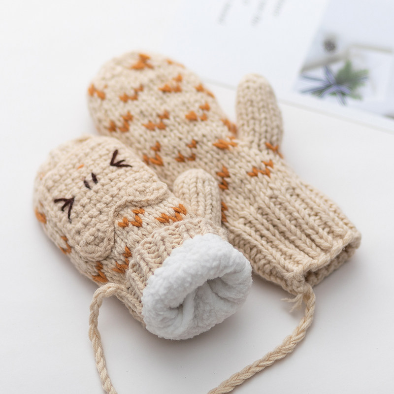 Демисезонные перчатки, демисезонный утепленный удерживающий тепло милый брендовый плетеный шерстяной комплект, в корейском стиле