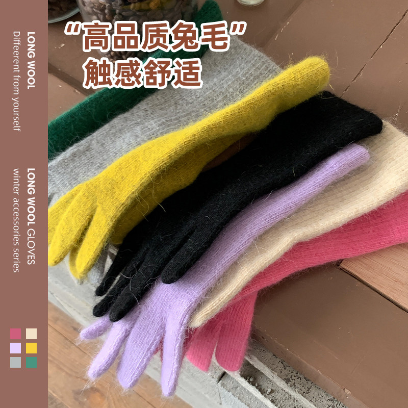 Трикотажные удерживающие тепло зимние длинные перчатки, популярно в интернете, в корейском стиле