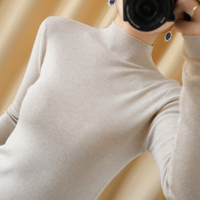Базовый приятный телу демисезонный приталенный короткий комплект, трикотажный свитер, высокий воротник, в обтяжку, по фигуре, в западном стиле