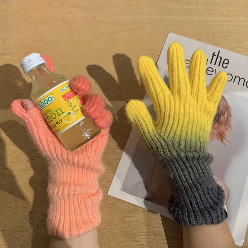 Зимние шерстяные трикотажные перчатки, зимний удерживающий тепло милый комплект подходит для мужчин и женщин, градиент