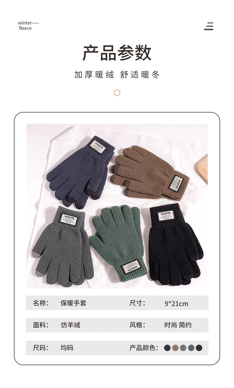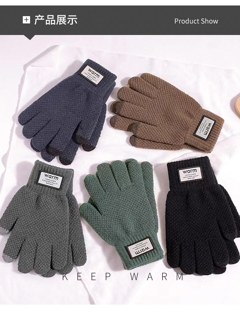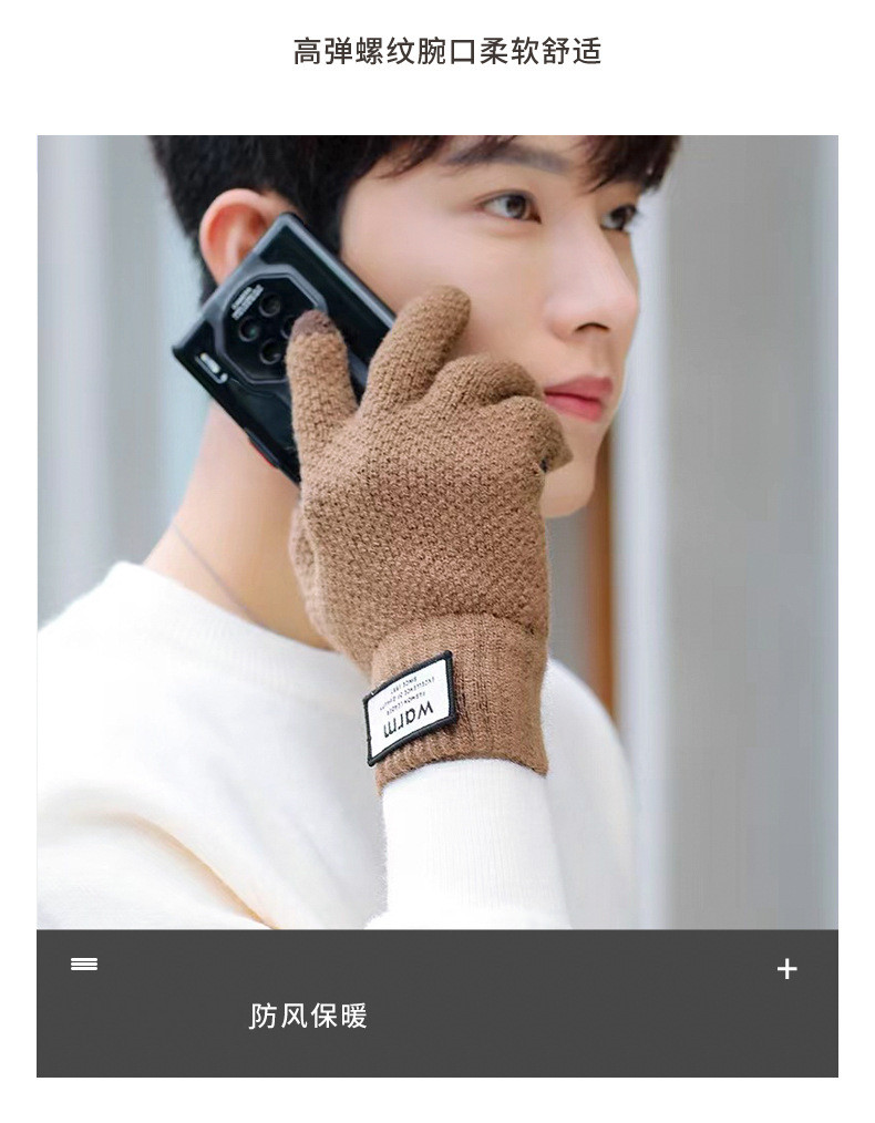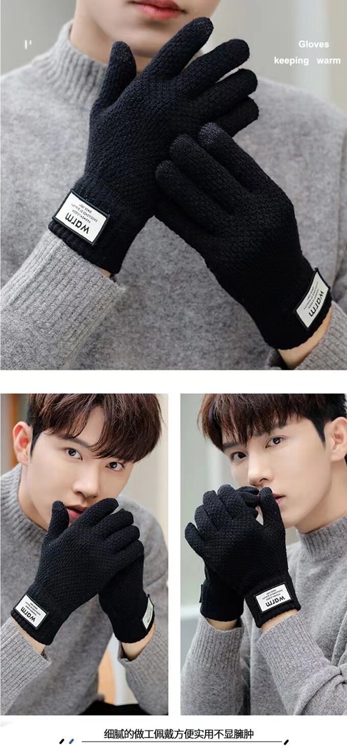 Мужские демисезонные удерживающие тепло милые трикотажные перчатки, в корейском стиле