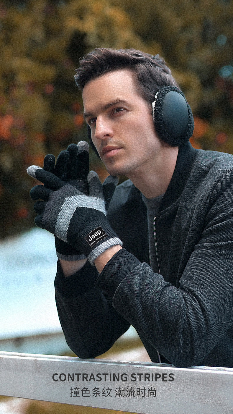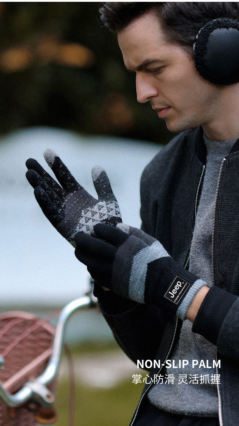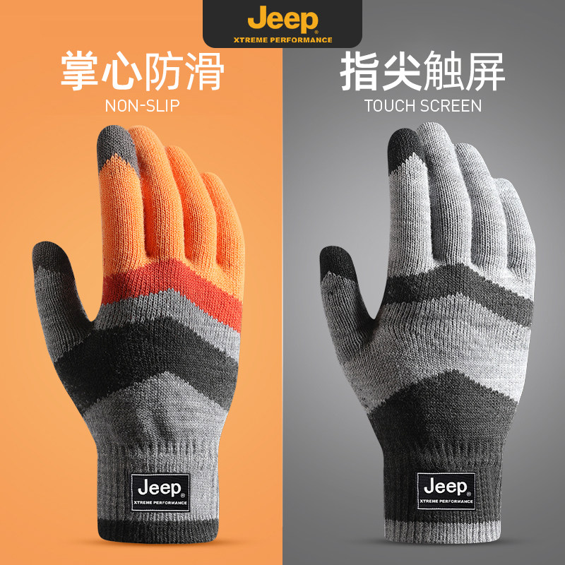Jeep, трикотажный джип, мужские перчатки, зимний удерживающий тепло утепленный электромобиль