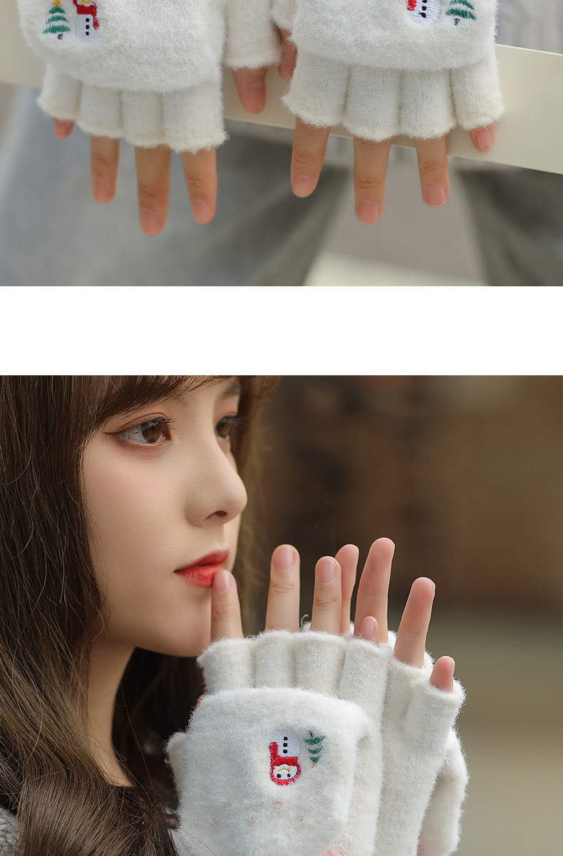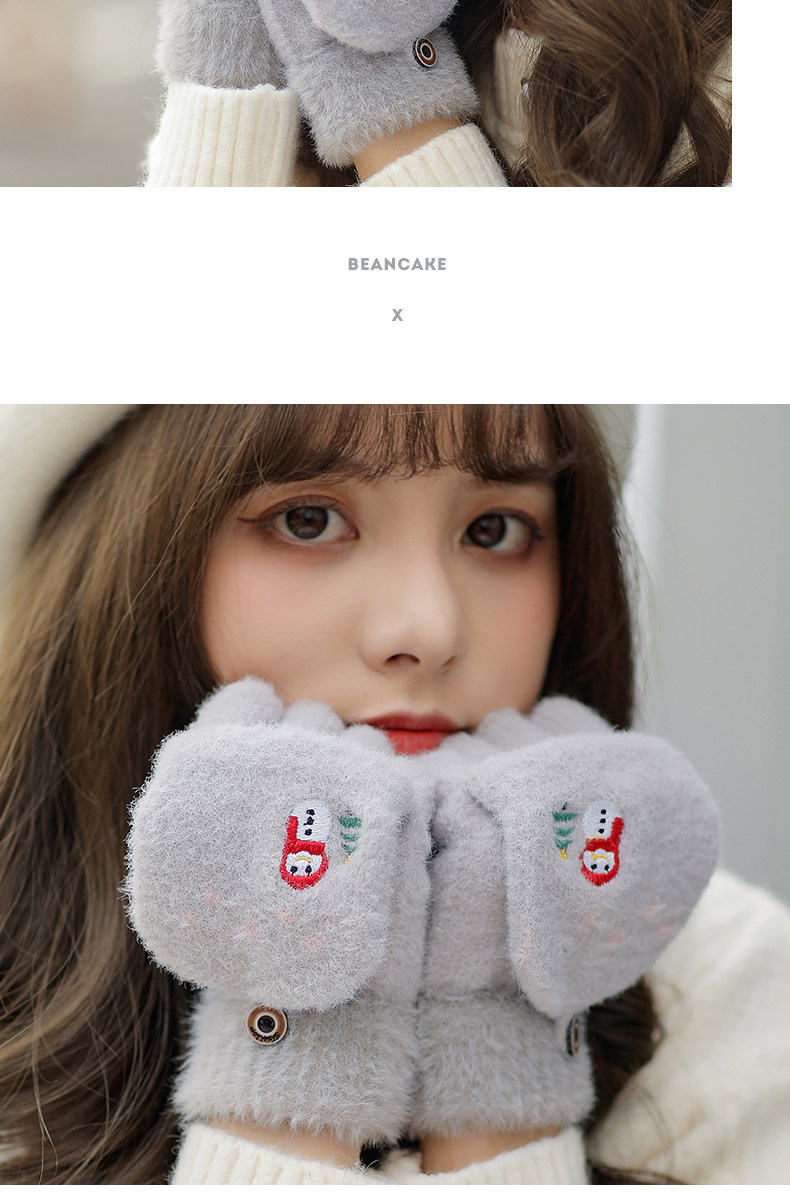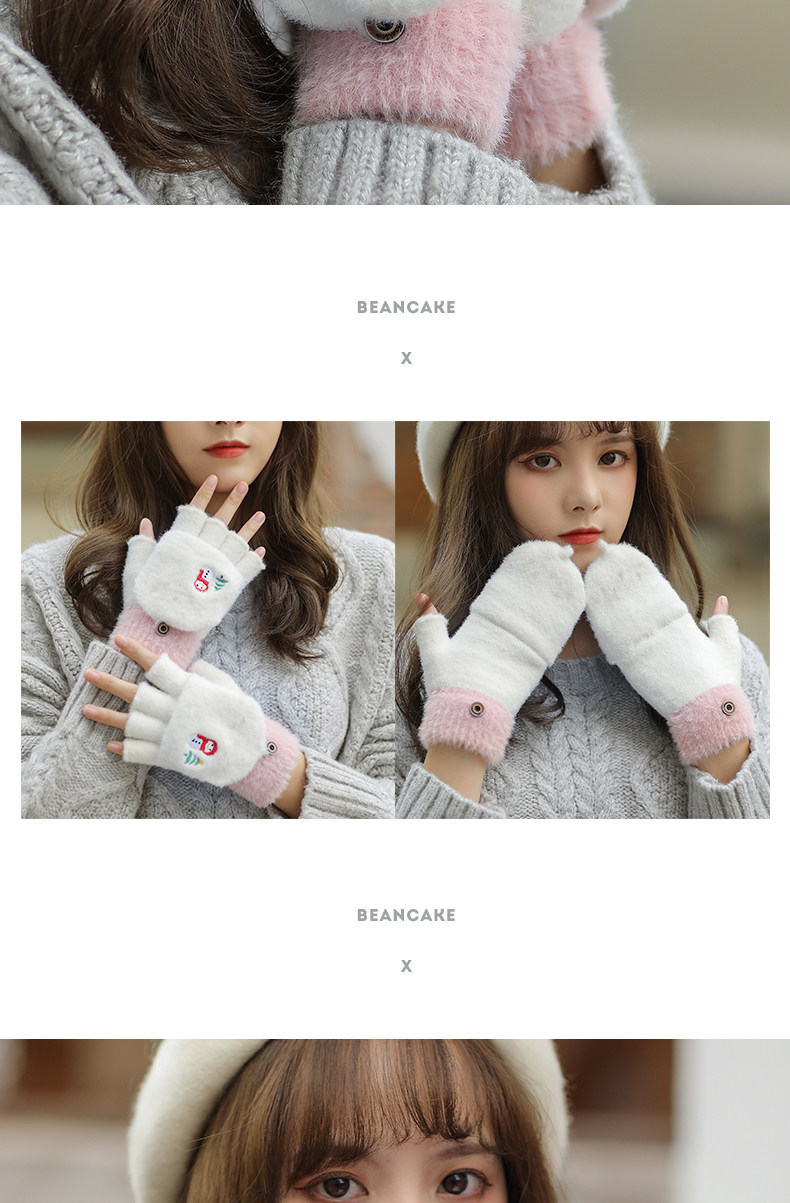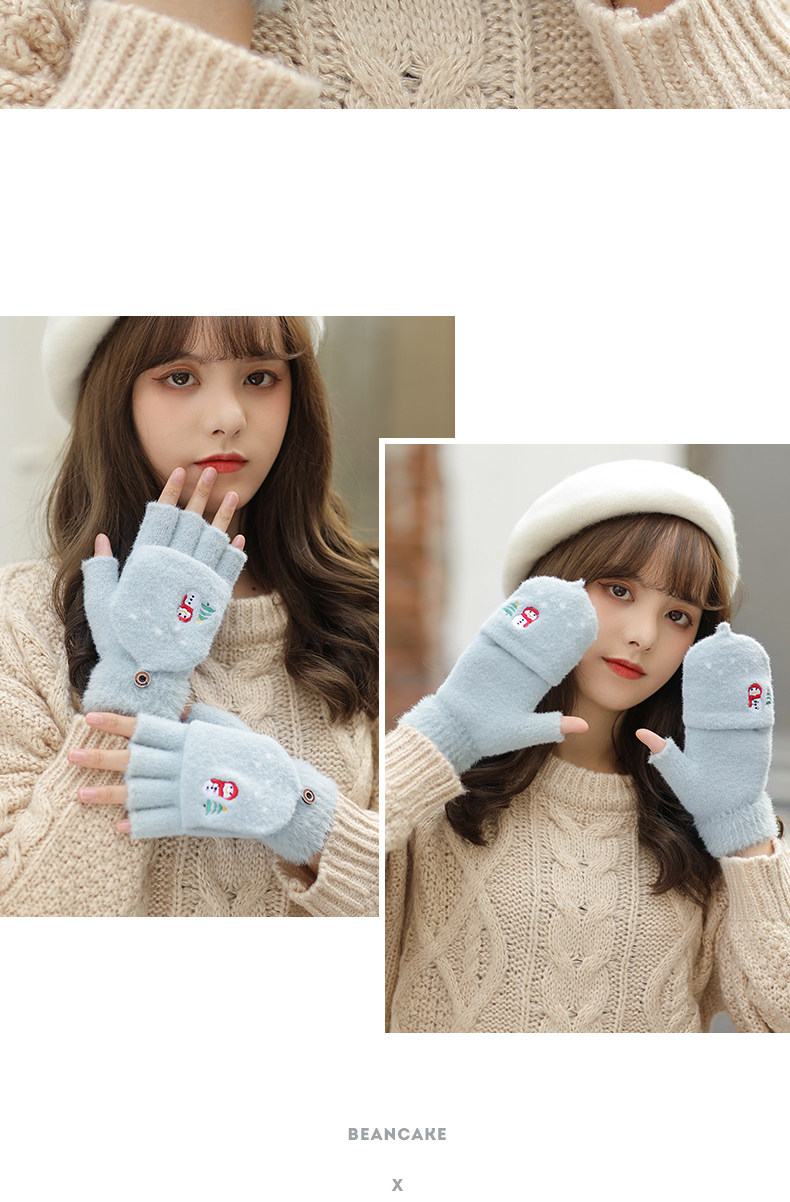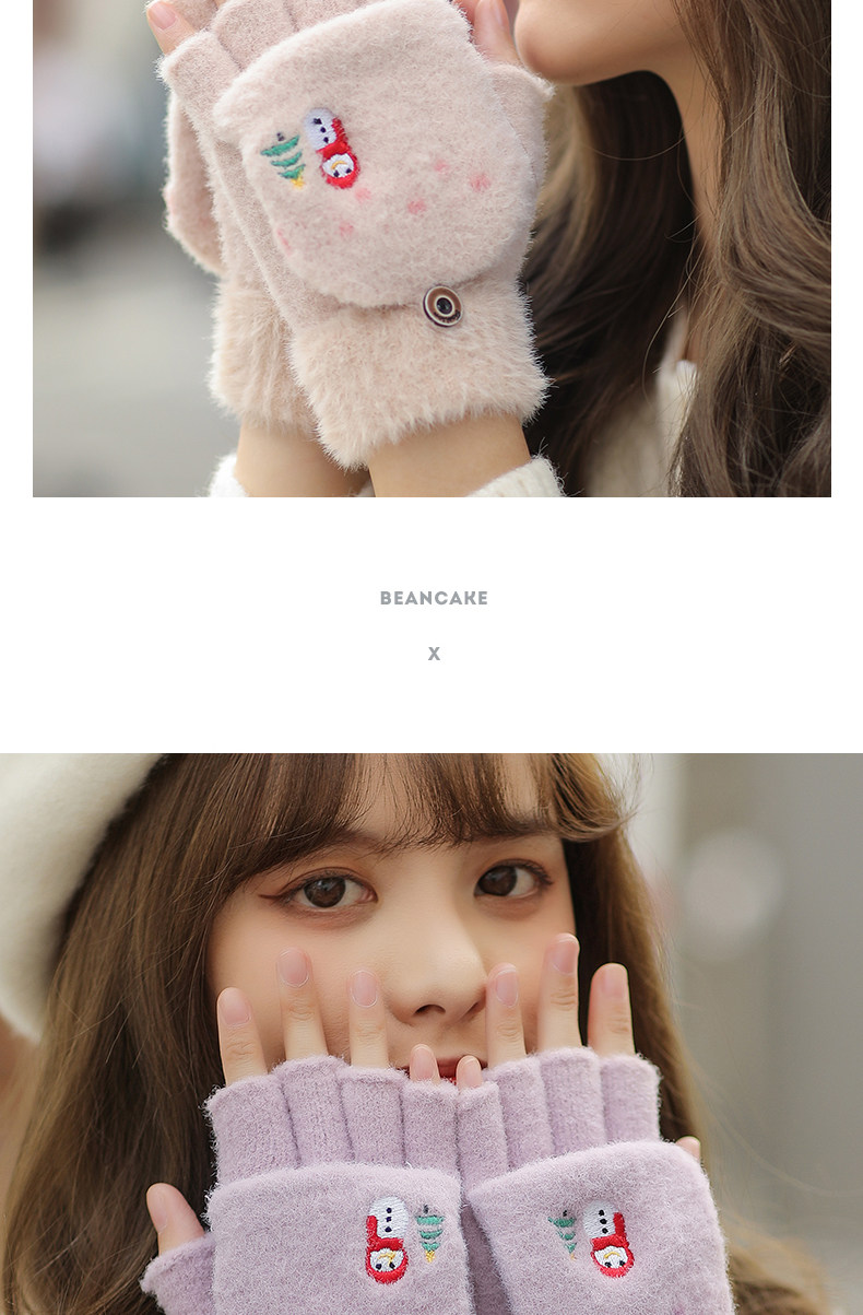 Зимние милые мультяшные демисезонные удерживающие тепло перчатки, в корейском стиле, без пальцев