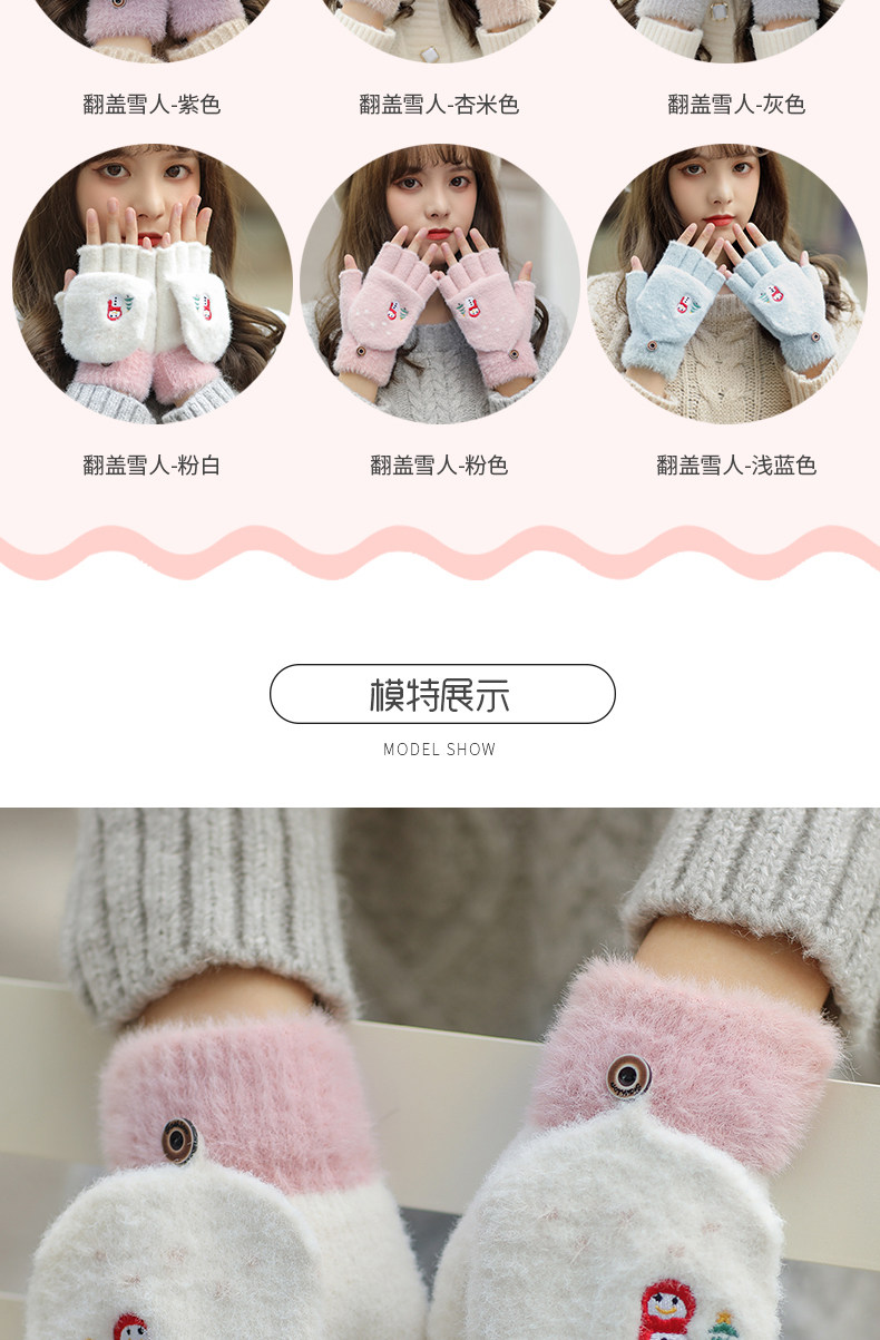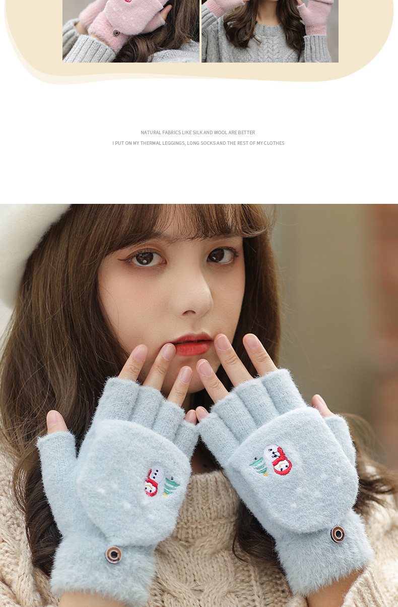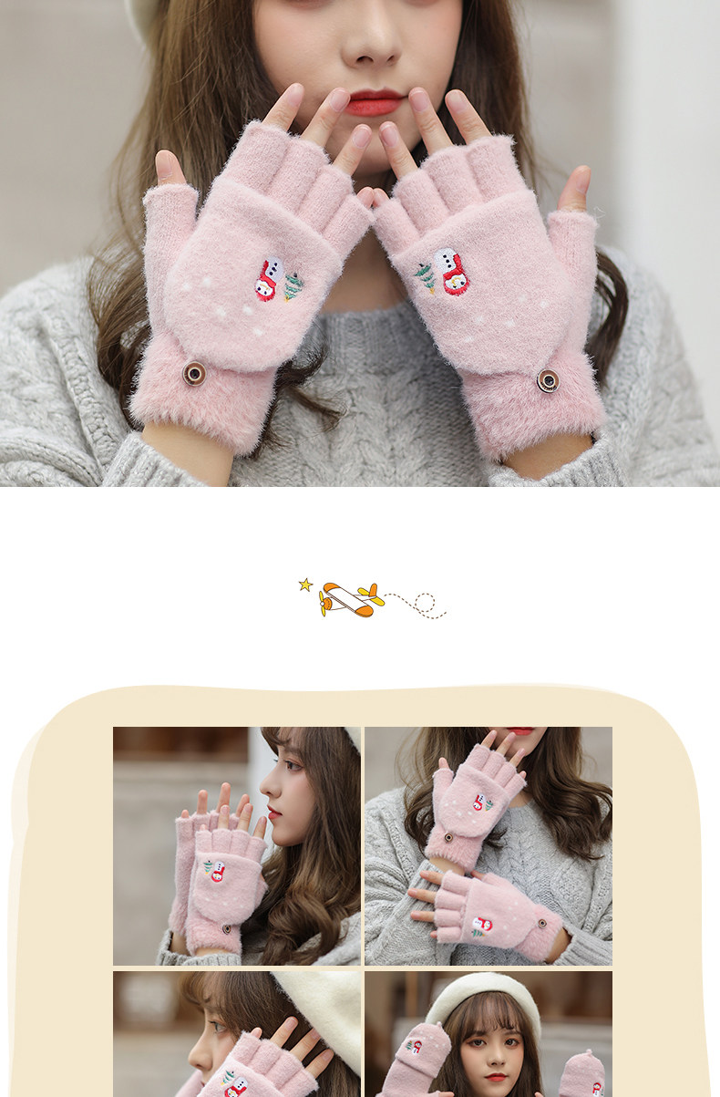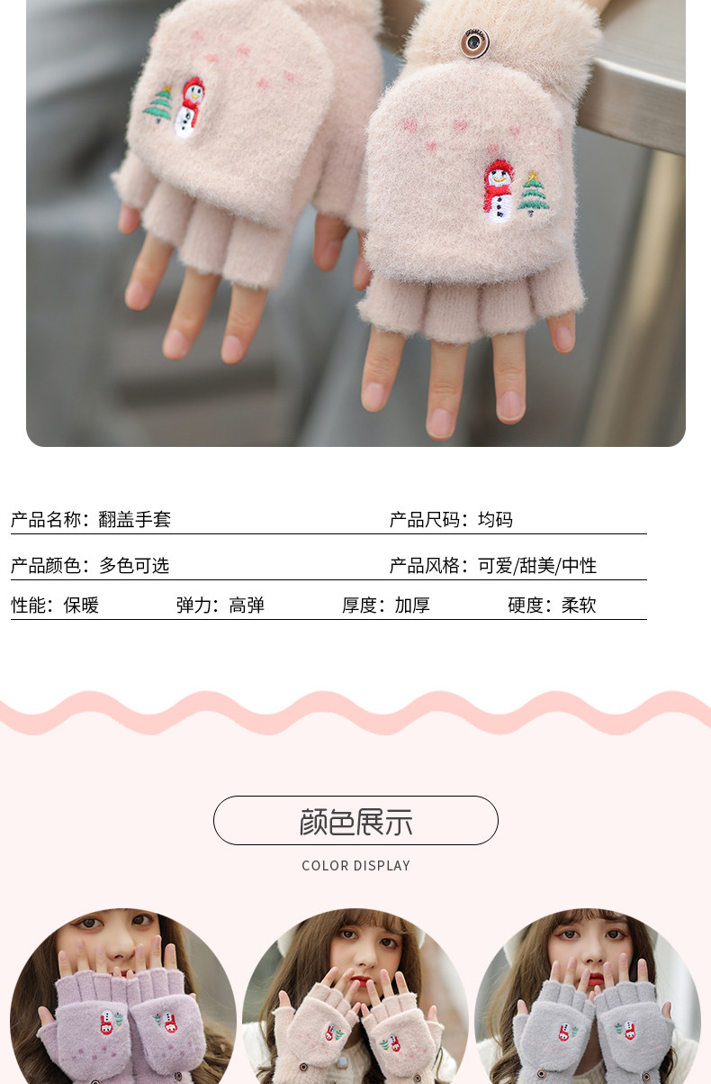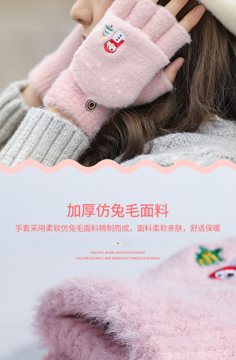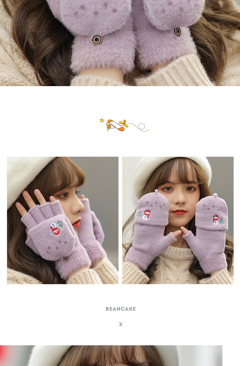 Зимние милые мультяшные демисезонные удерживающие тепло перчатки, в корейском стиле, без пальцев