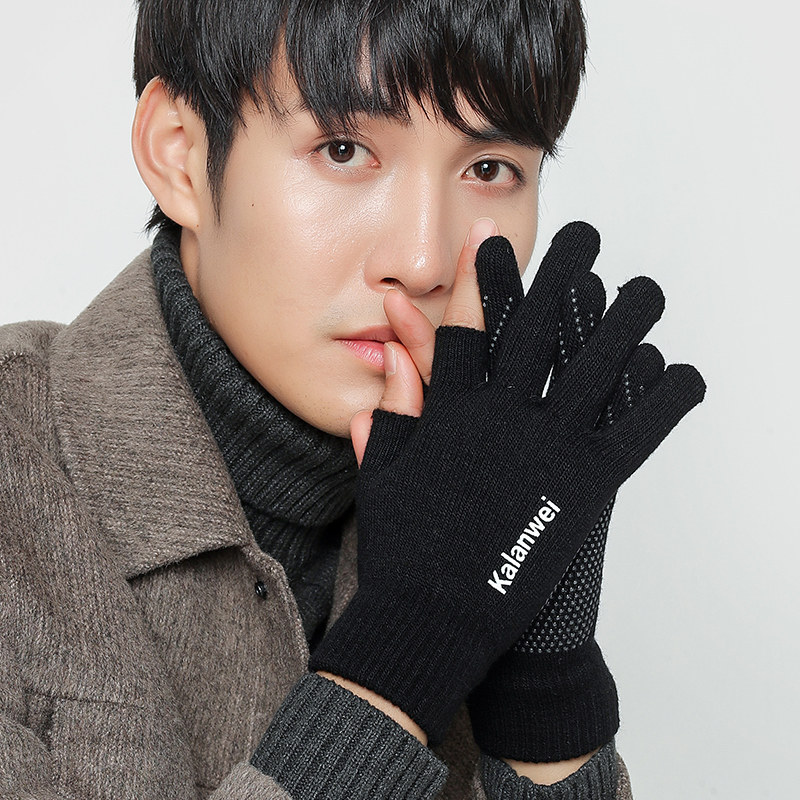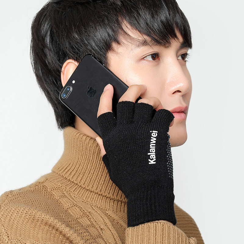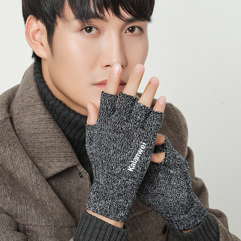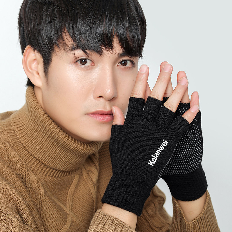 Мужские демисезонные утепленные удерживающие тепло трикотажные перчатки, без пальцев