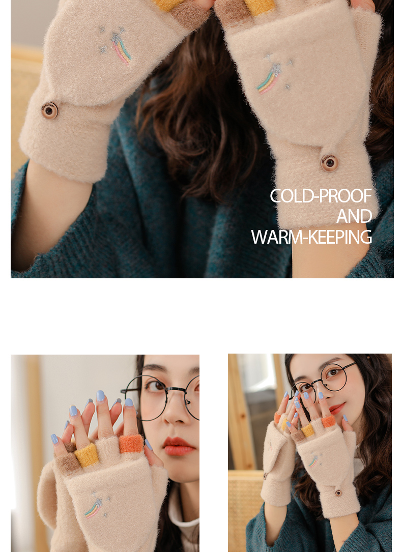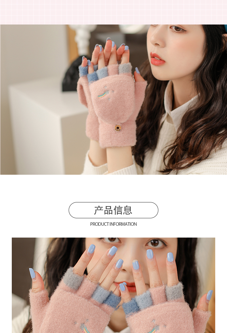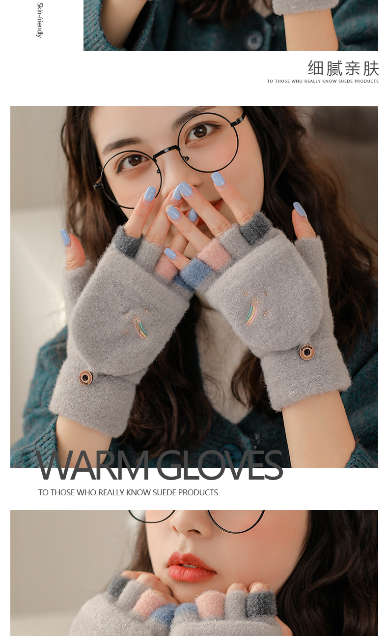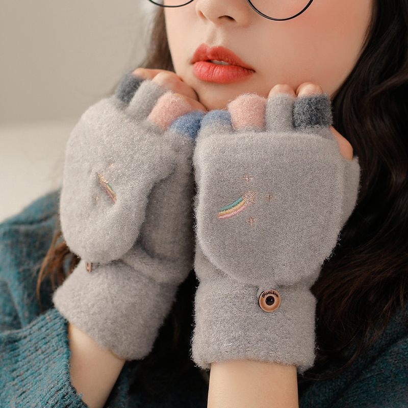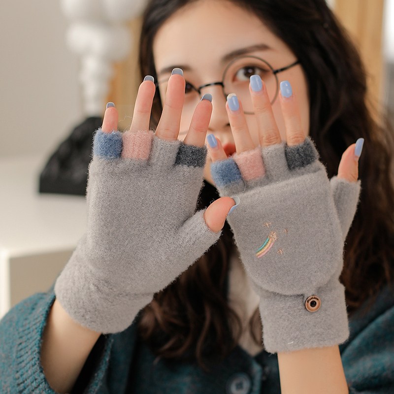 Удерживающие тепло милые перчатки, в корейском стиле, без пальцев