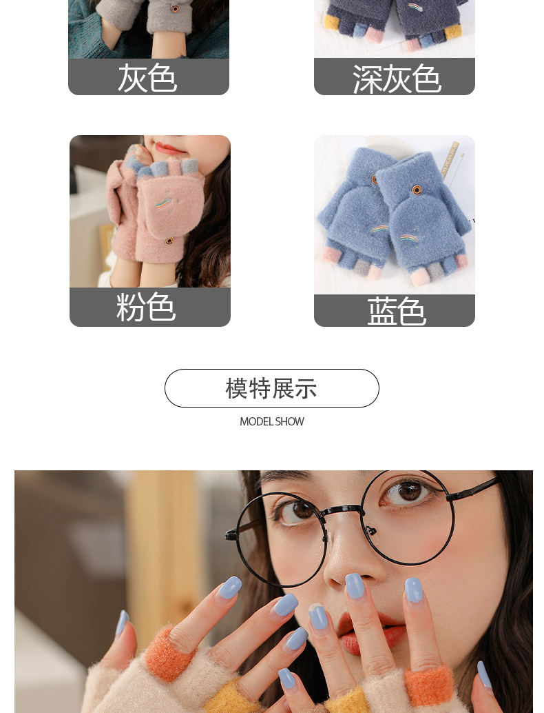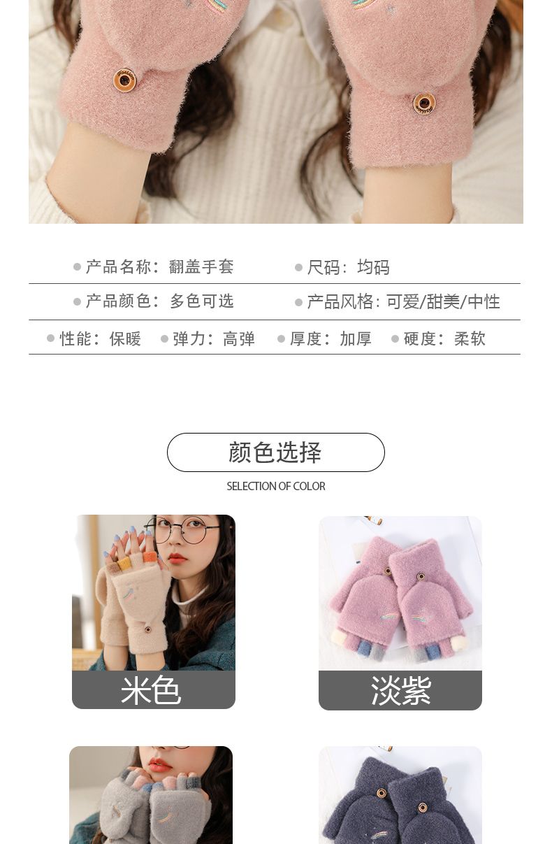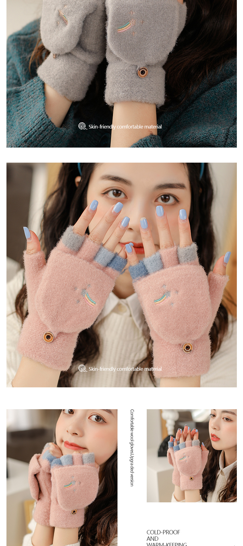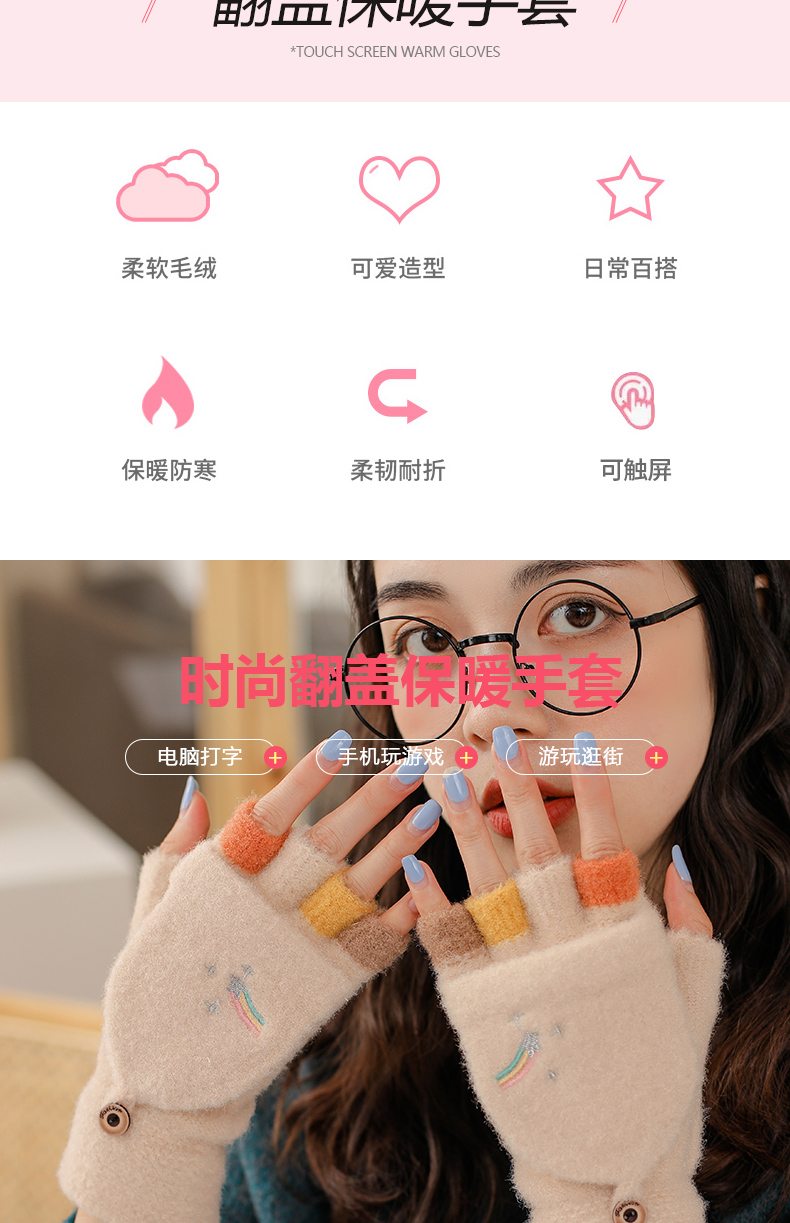 Удерживающие тепло милые перчатки, в корейском стиле, без пальцев