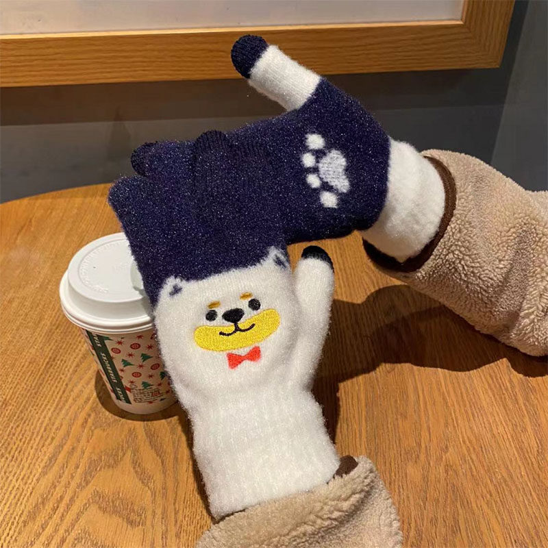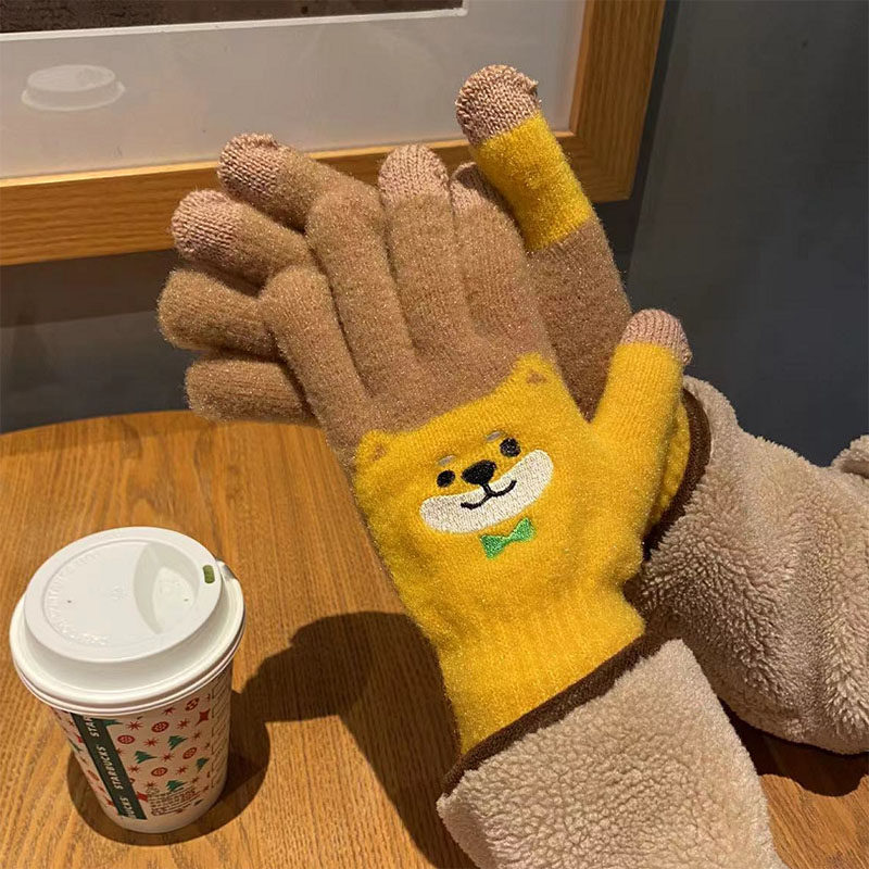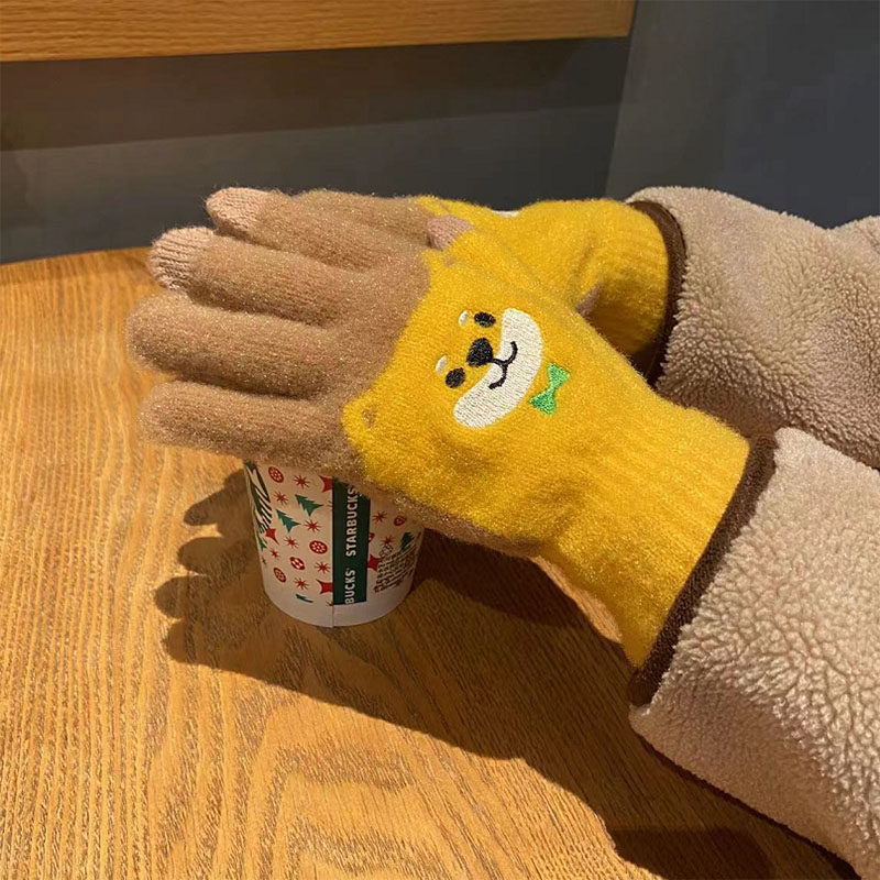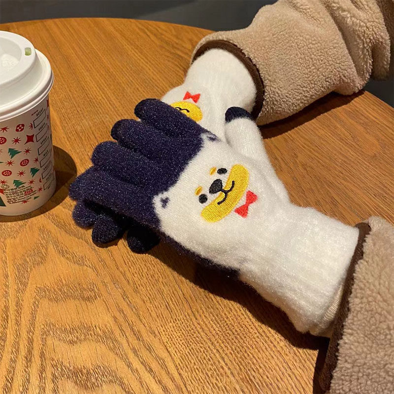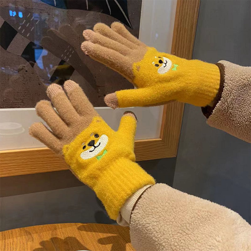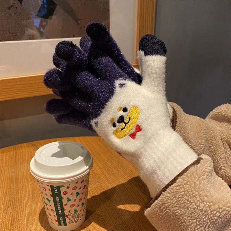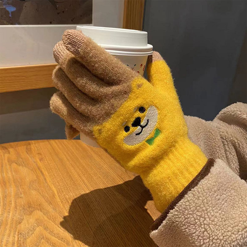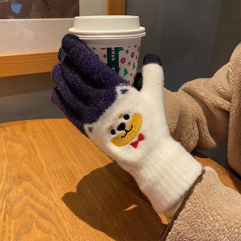 Японские перчатки, удерживающий тепло милый бархатный мультяшный комплект для школьников и студентов, увеличенная толщина