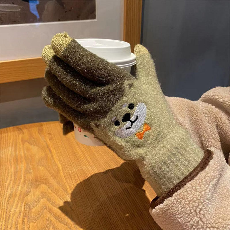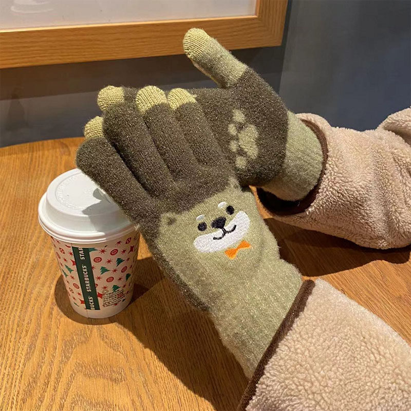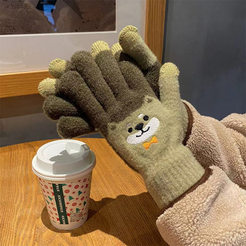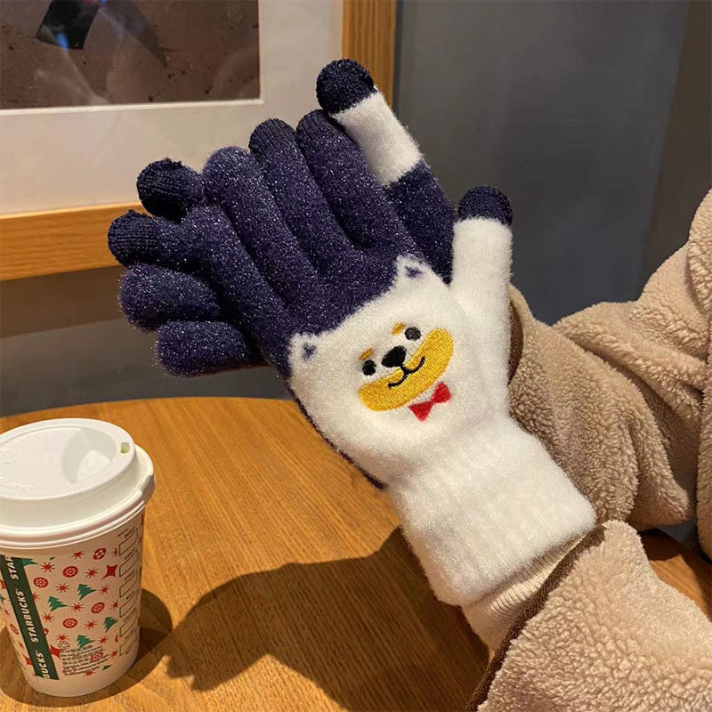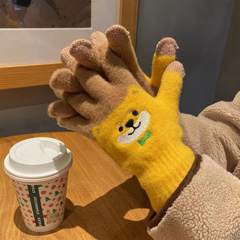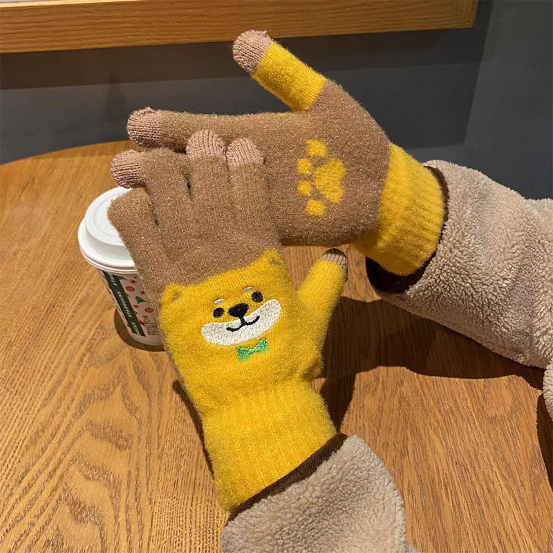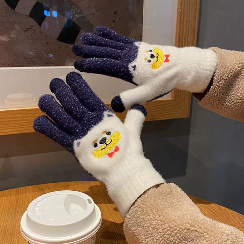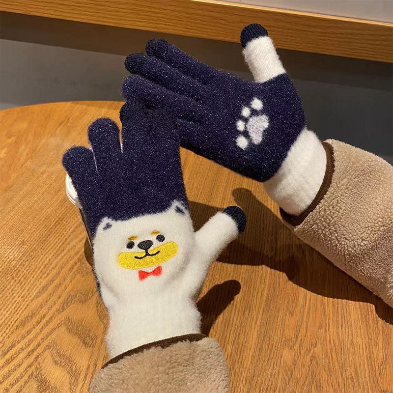 Японские перчатки, удерживающий тепло милый бархатный мультяшный комплект для школьников и студентов, увеличенная толщина