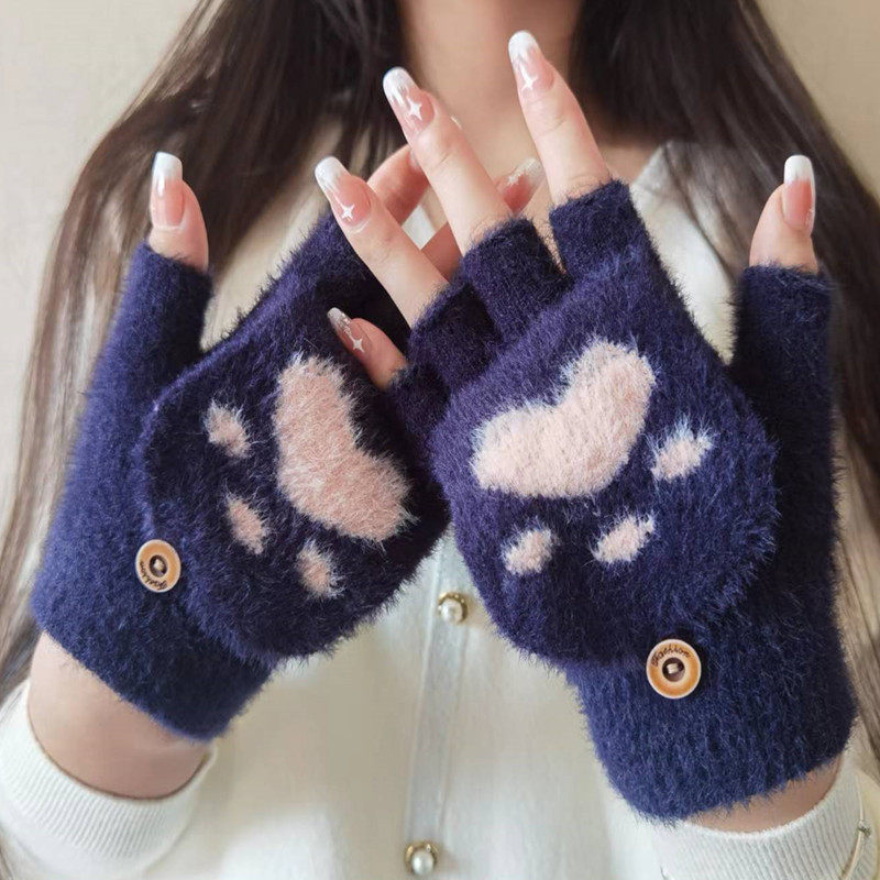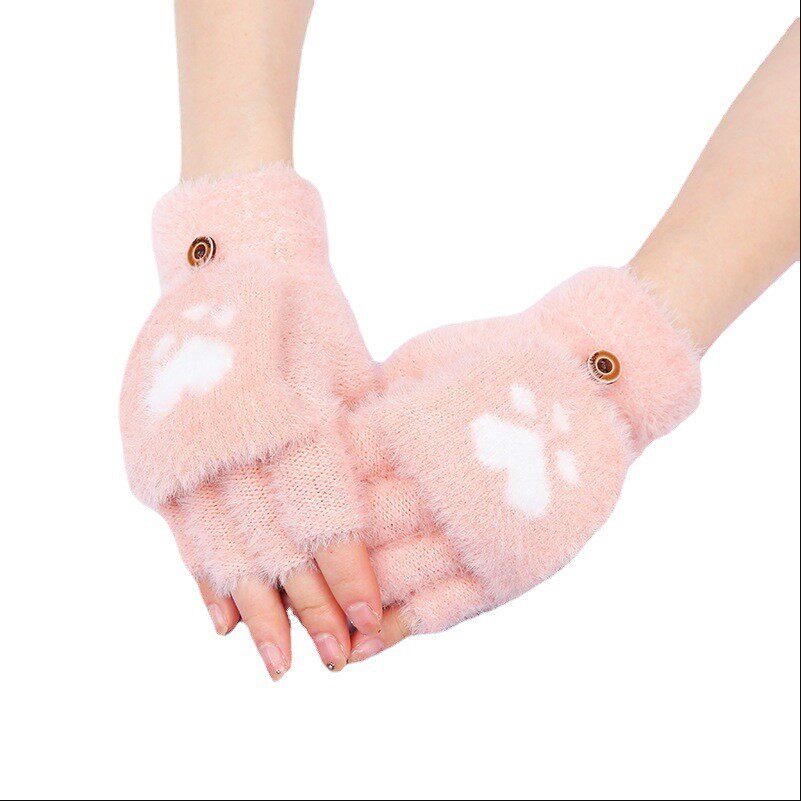 Зимние перчатки, милый комплект, удерживающий тепло брендовый трикотажный велосипед для школьников и студентов, без пальцев