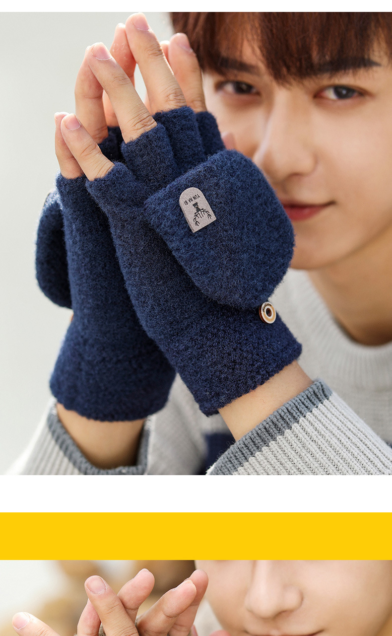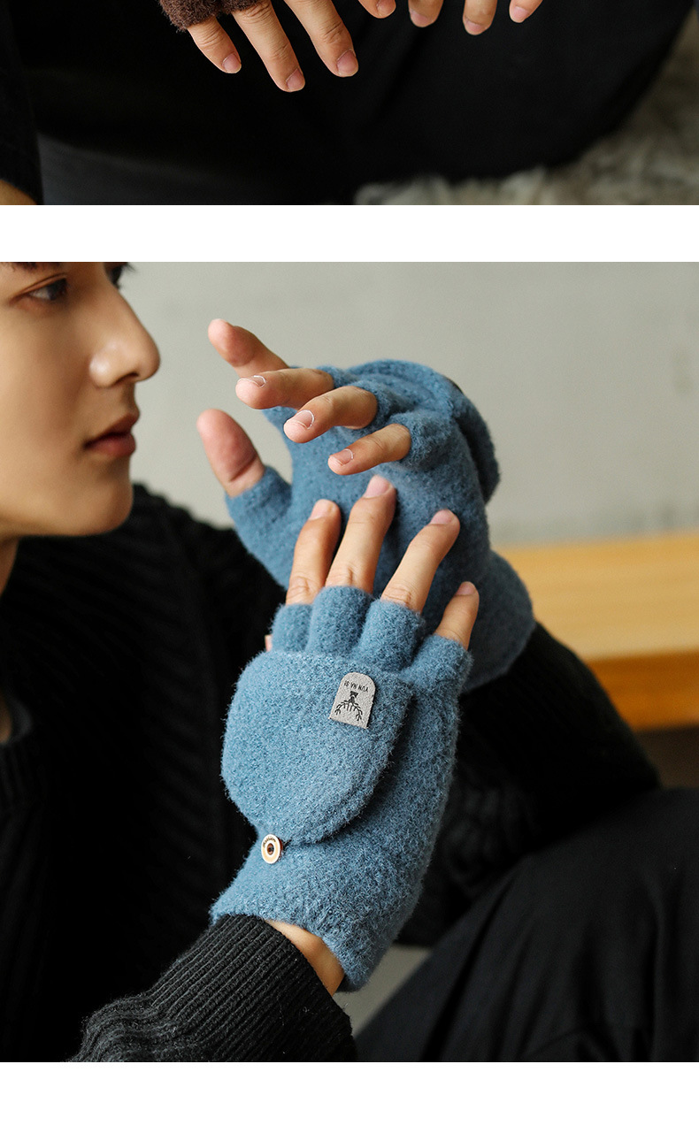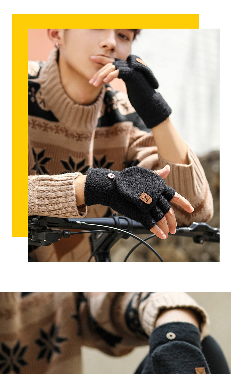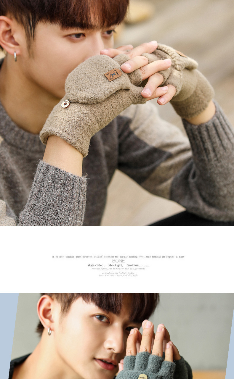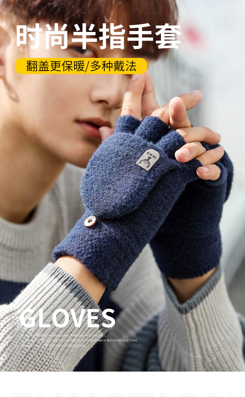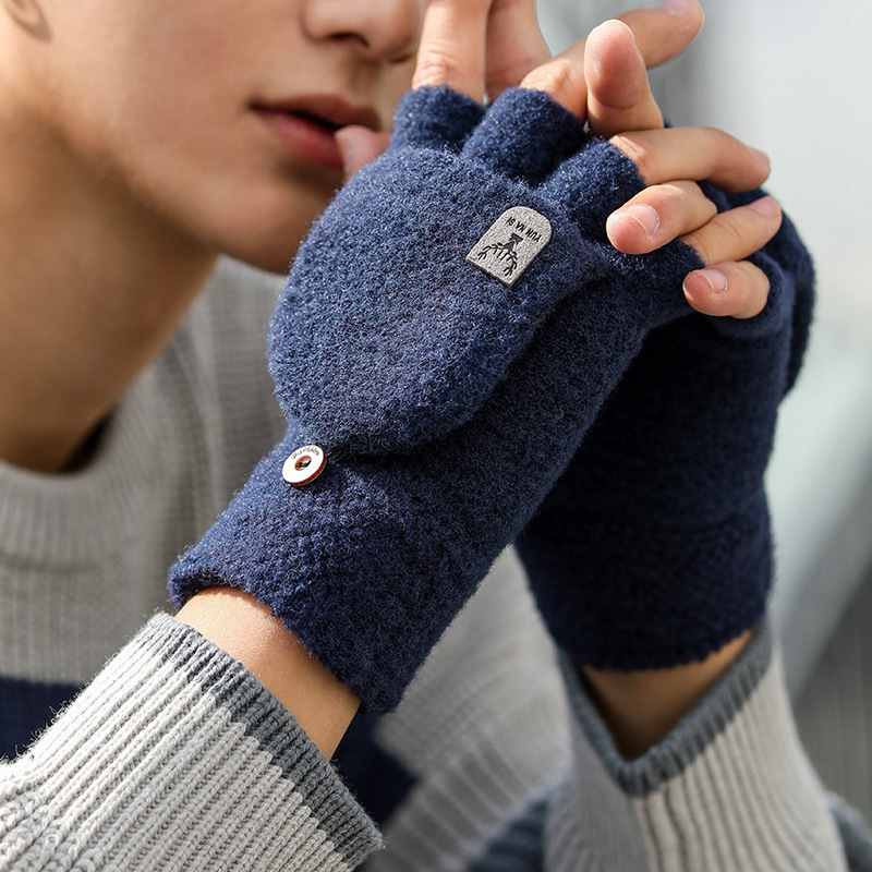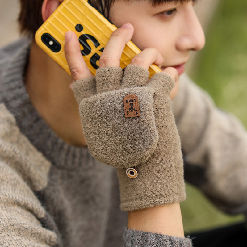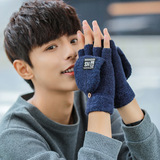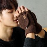 Мужские демисезонные трикотажные удерживающие тепло перчатки для влюбленных, без пальцев, в корейском стиле