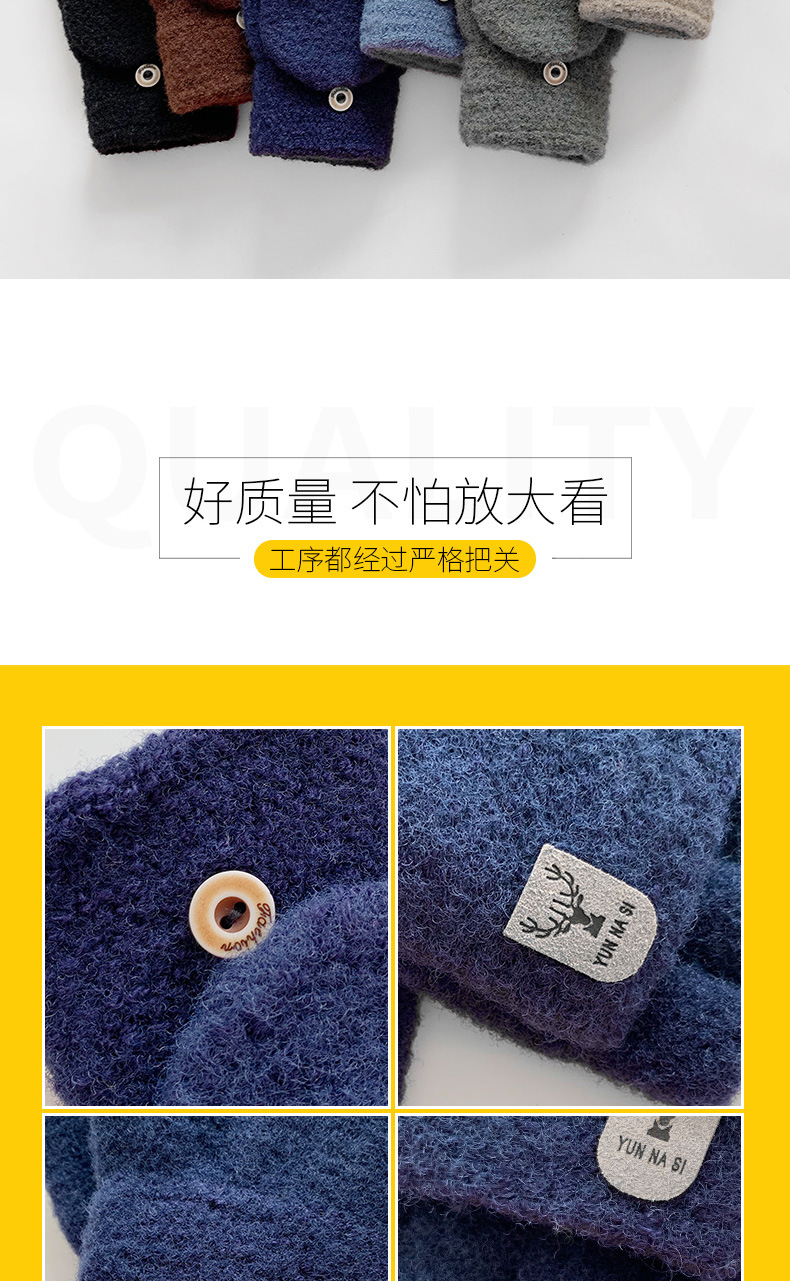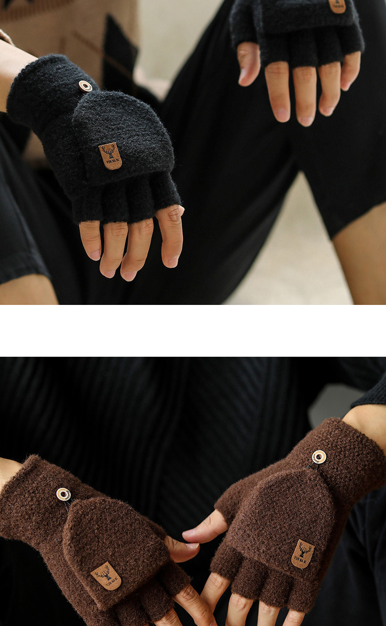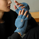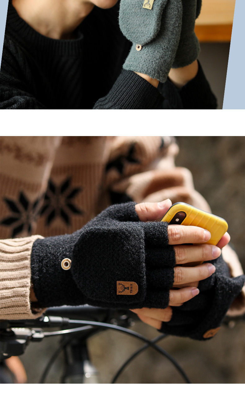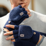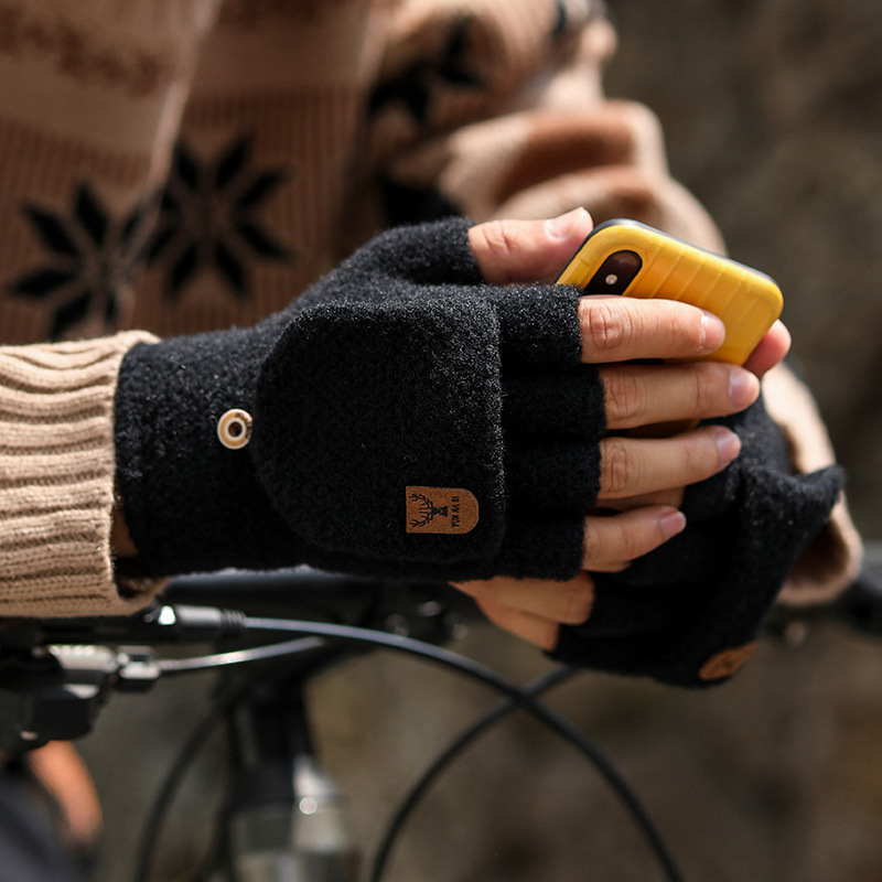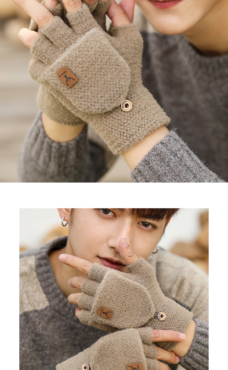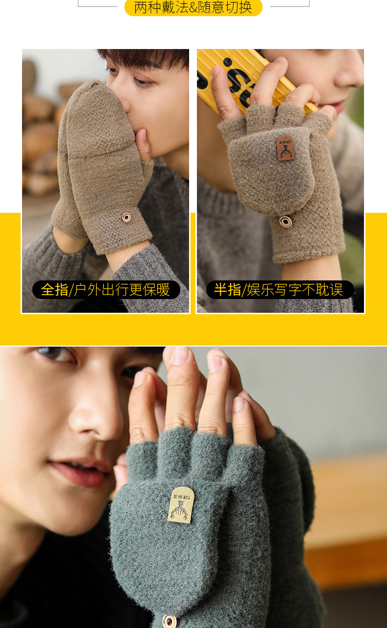 Мужские демисезонные трикотажные удерживающие тепло перчатки для влюбленных, без пальцев, в корейском стиле