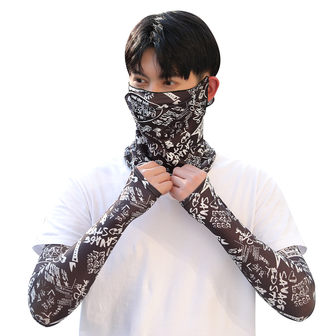 Комплект, налокотники, шелковые дорожные нарукавники, мужские перчатки, маска для велоспорта, мужской стиль, защита от солнца