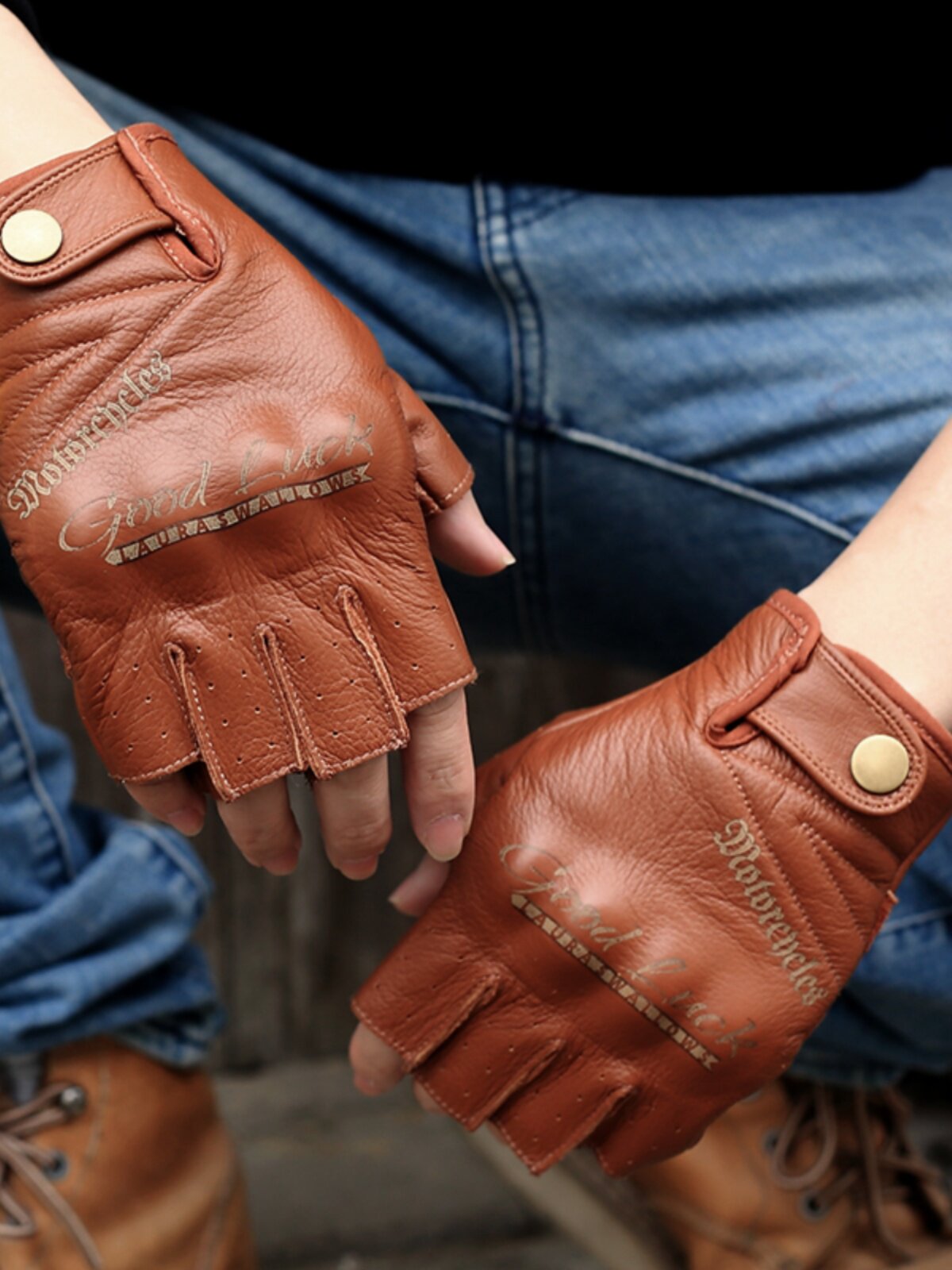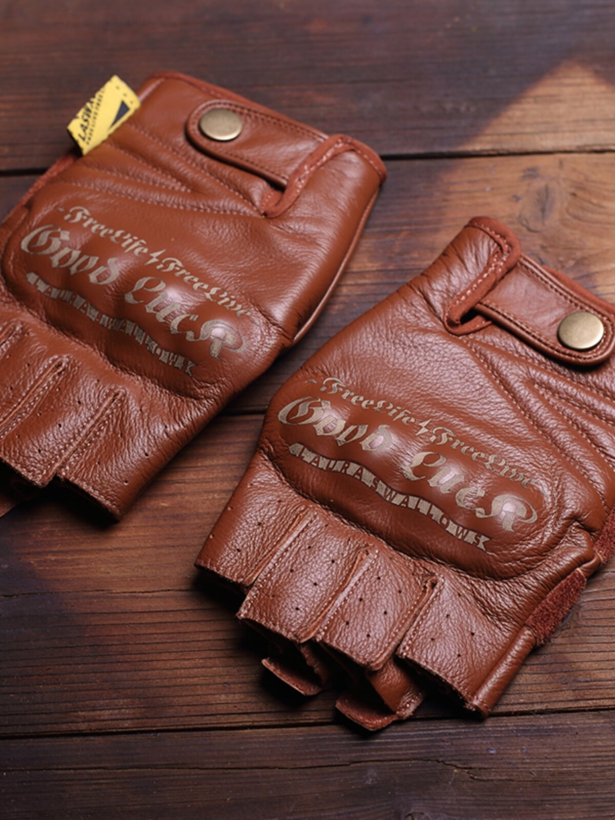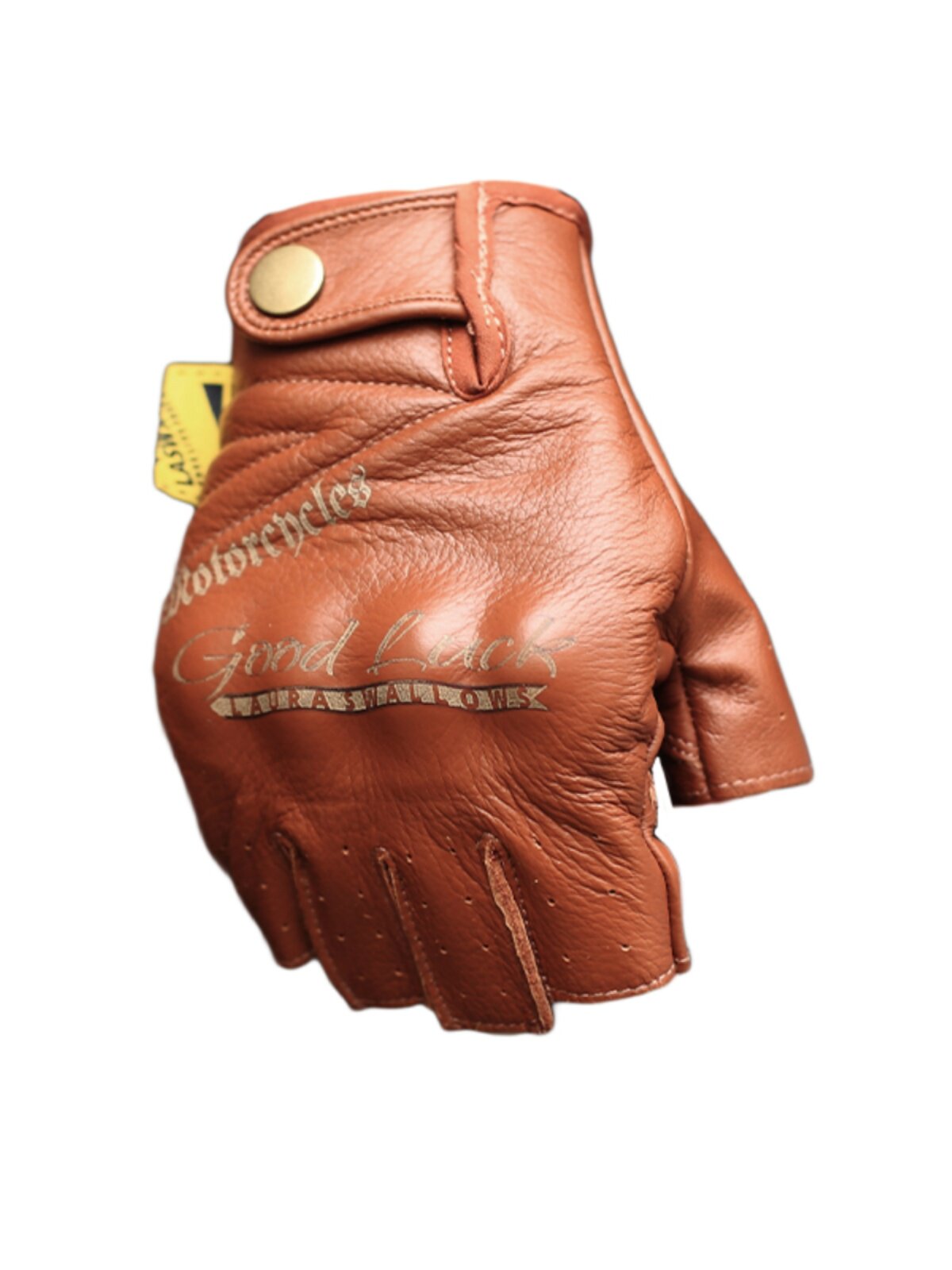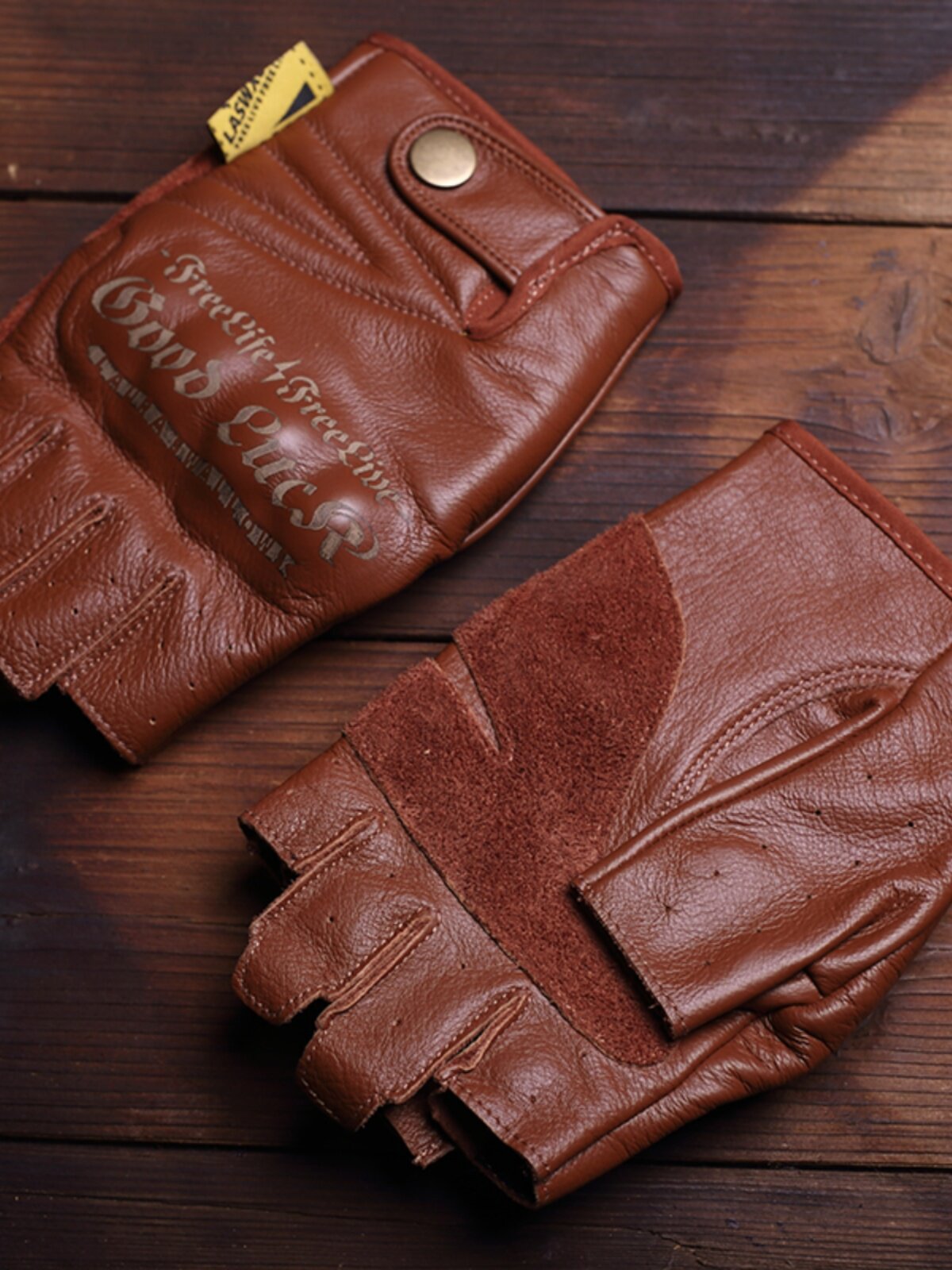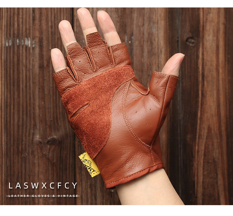 Кожаные износостойкие коричневые перчатки, без пальцев, из натуральной кожи, принт