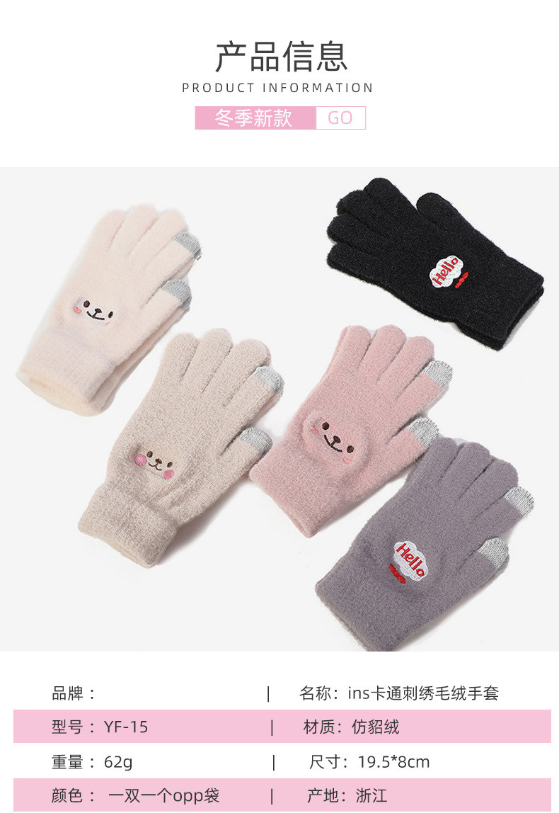 Демисезонные удерживающие тепло милые перчатки для школьников и студентов, утепленный экран, в корейском стиле