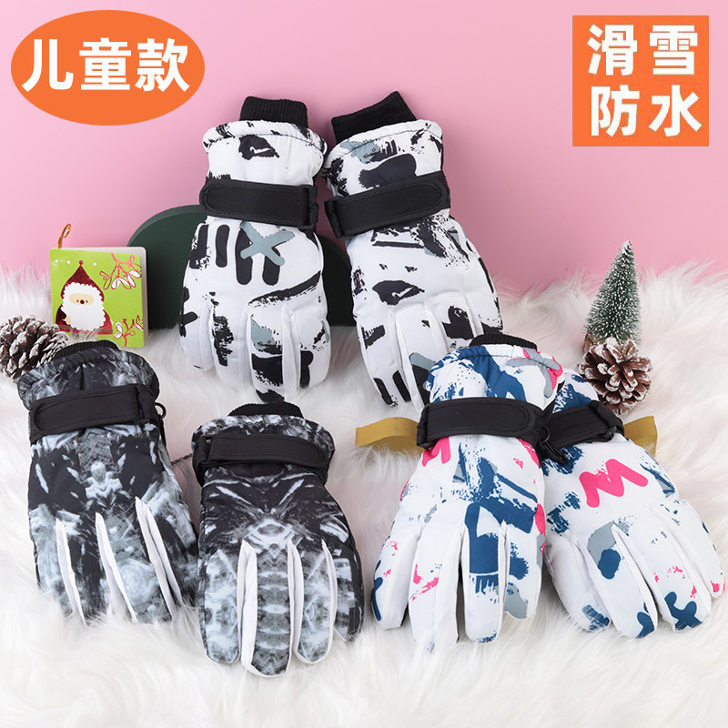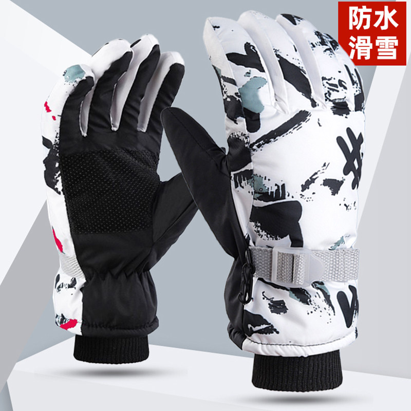 Детские лыжные утепленные водоотталкивающие удерживающие тепло нескользящие белые зимние перчатки