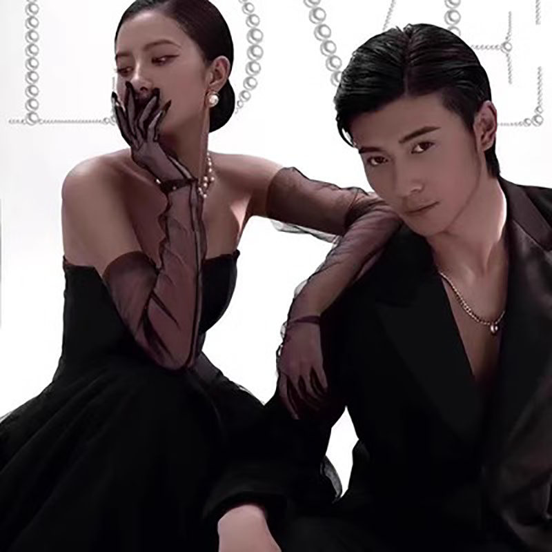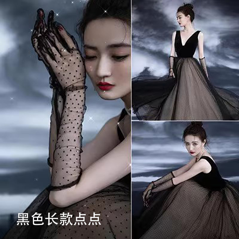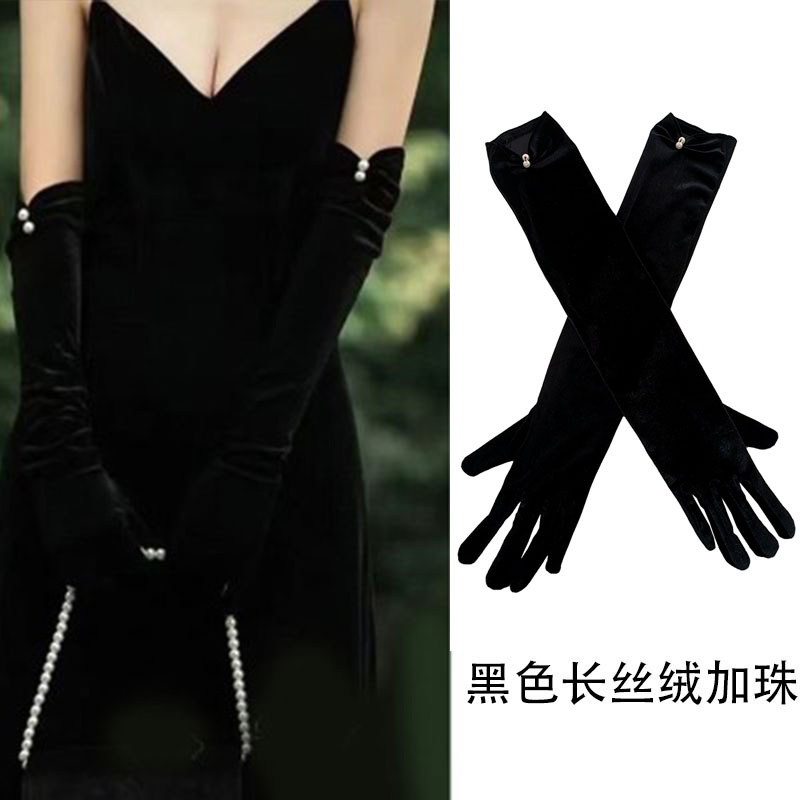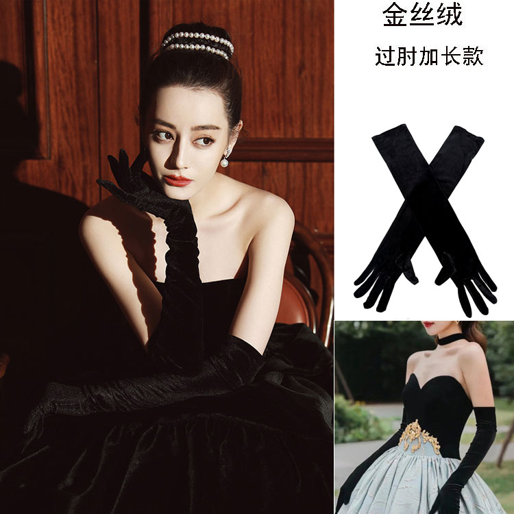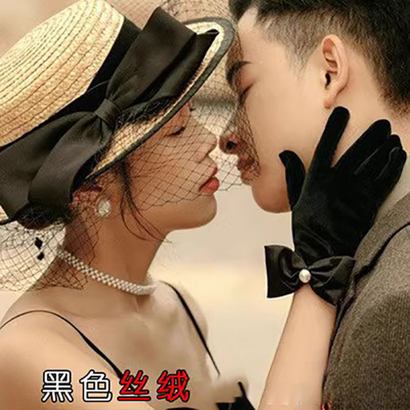 Черные бархатные перчатки, комплект, ретро платье для невесты, французский стиль