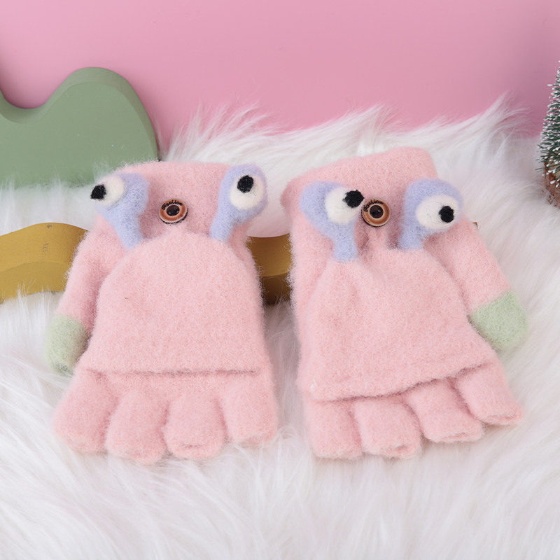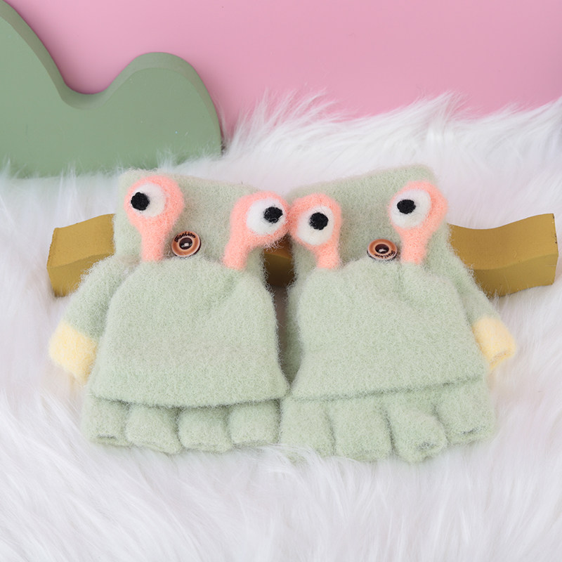 Зимние детские милые удерживающие тепло трикотажные эластичные перчатки подходит для мужчин и женщин, 3-7 лет, без пальцев