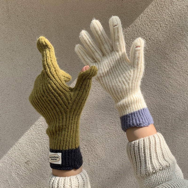 Трикотажные зимние милые удерживающие тепло перчатки подходит для мужчин и женщин, коллекция 2023