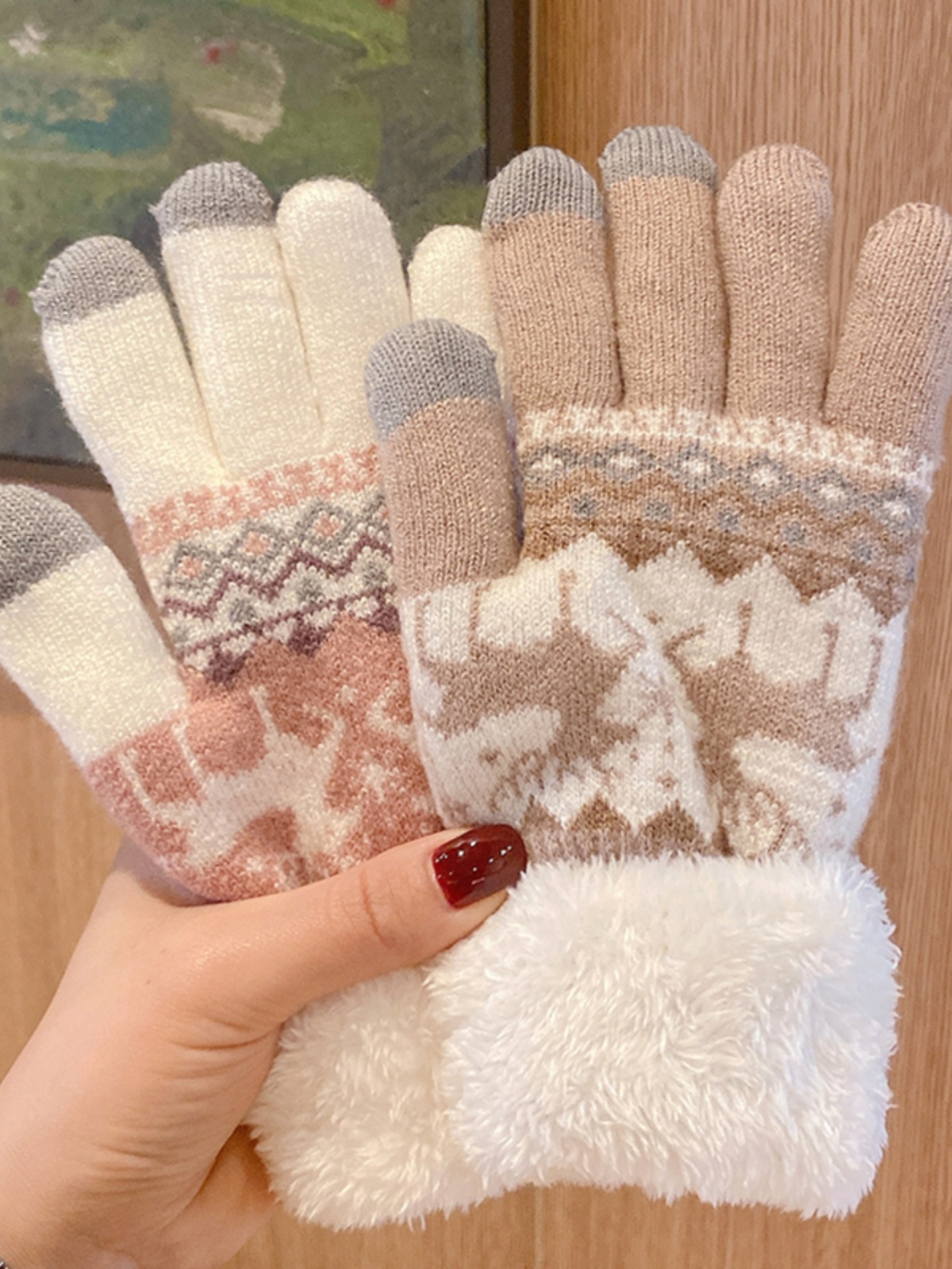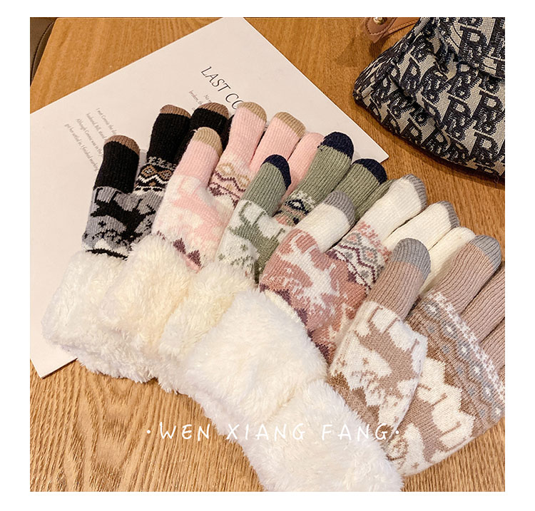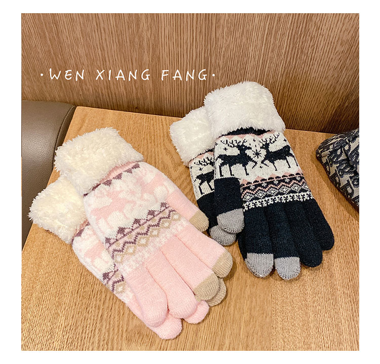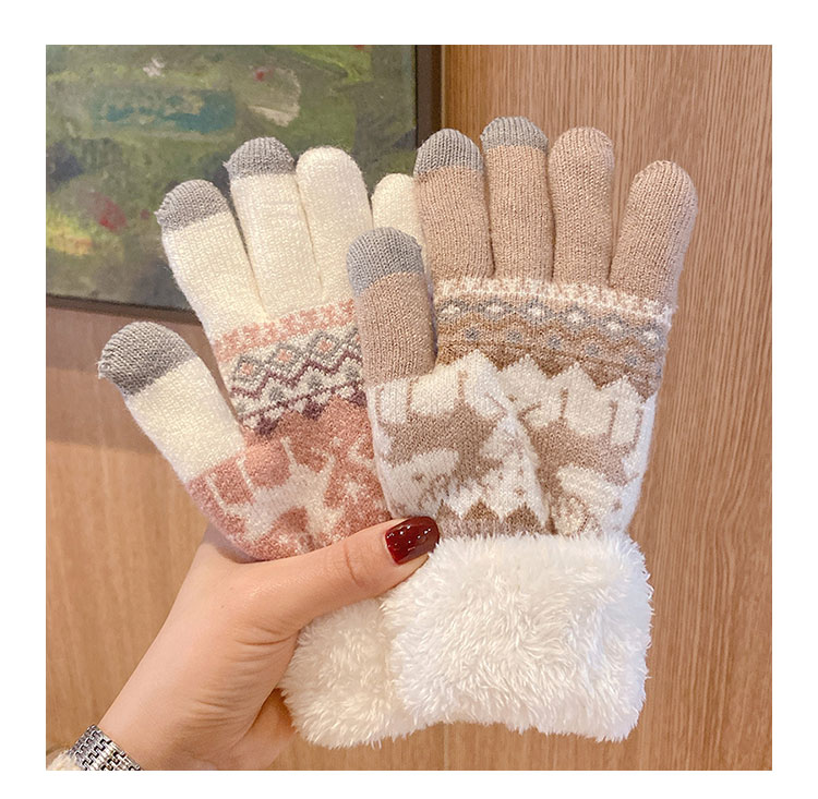 Зимние перчатки для студентов, милый Q-образный велосипед, шерстяная подкладка и утолщенный сенсорный экран Heattech, чтобы предотвратить холодное зимнее Рождество
