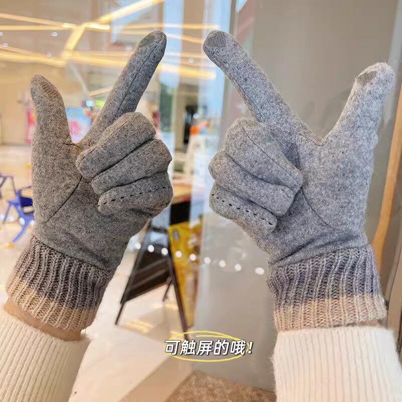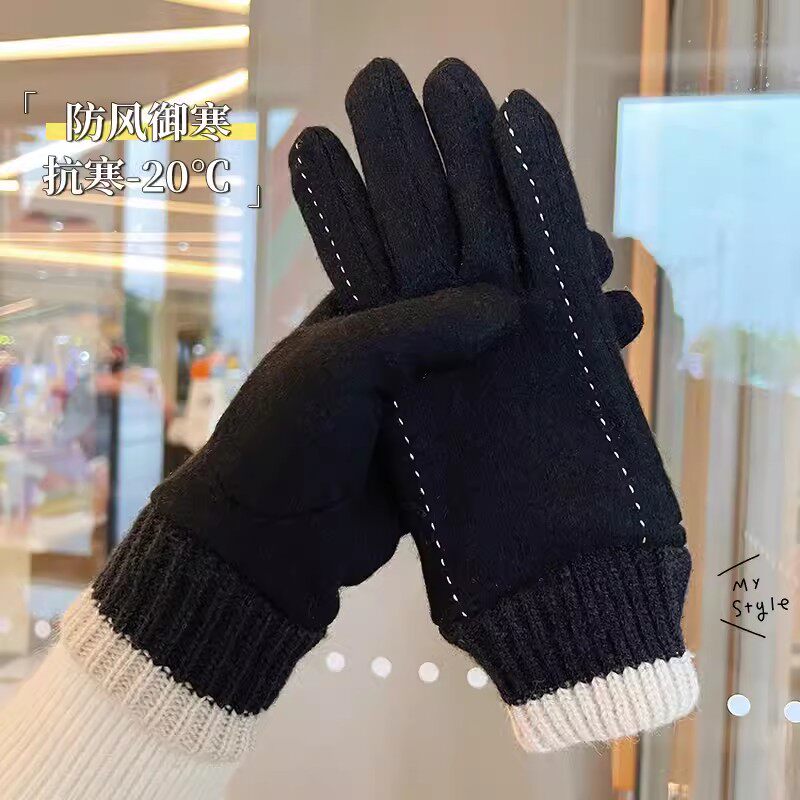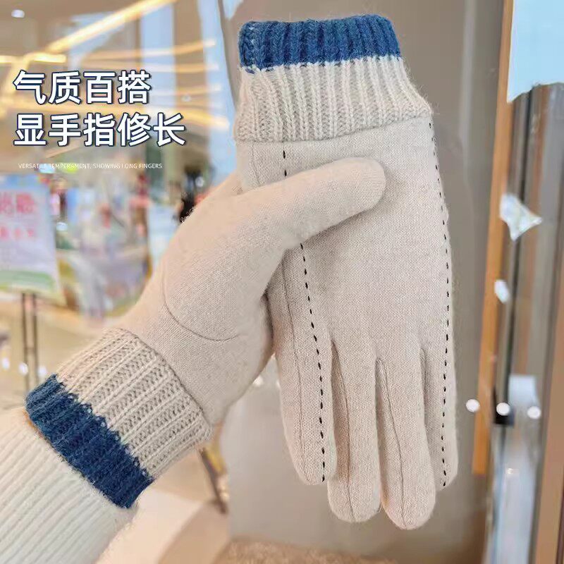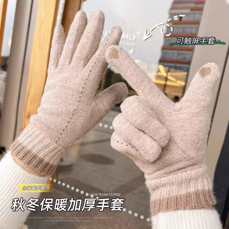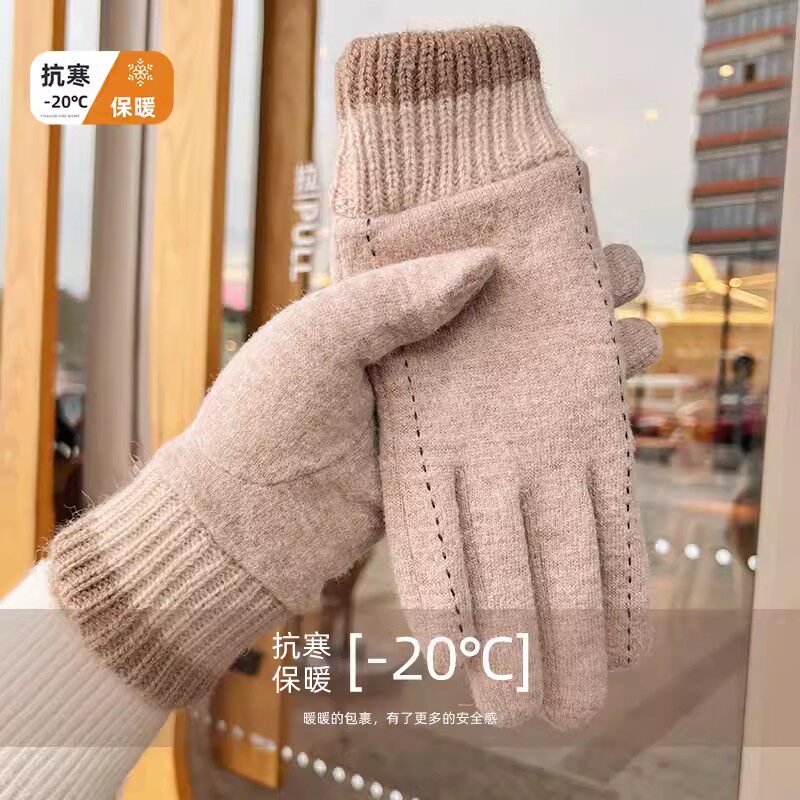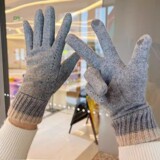 Зимние перчатки, удерживающий тепло утепленный дорожный ветрозащитный трикотажный шерстяной комплект, коллекция 2023