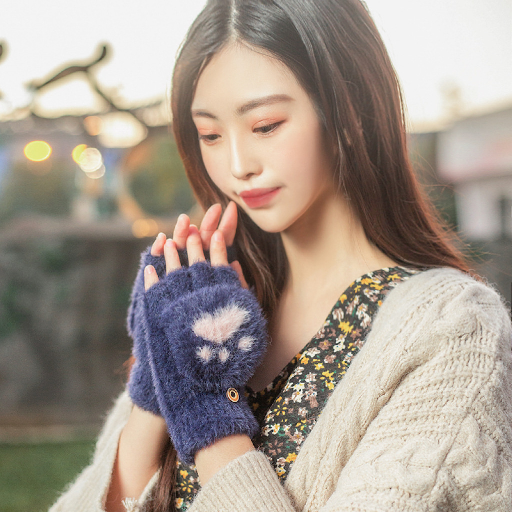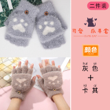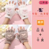 Бархатные перчатки, зимний милый дорожный удерживающий тепло утепленный комплект для школьников, без пальцев
