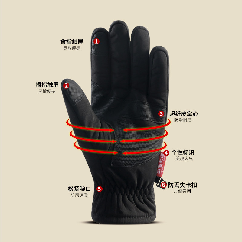 Зимние мужские ветрозащитные удерживающие тепло водонепроницаемые износостойкие лыжные флисовые перчатки, осенние