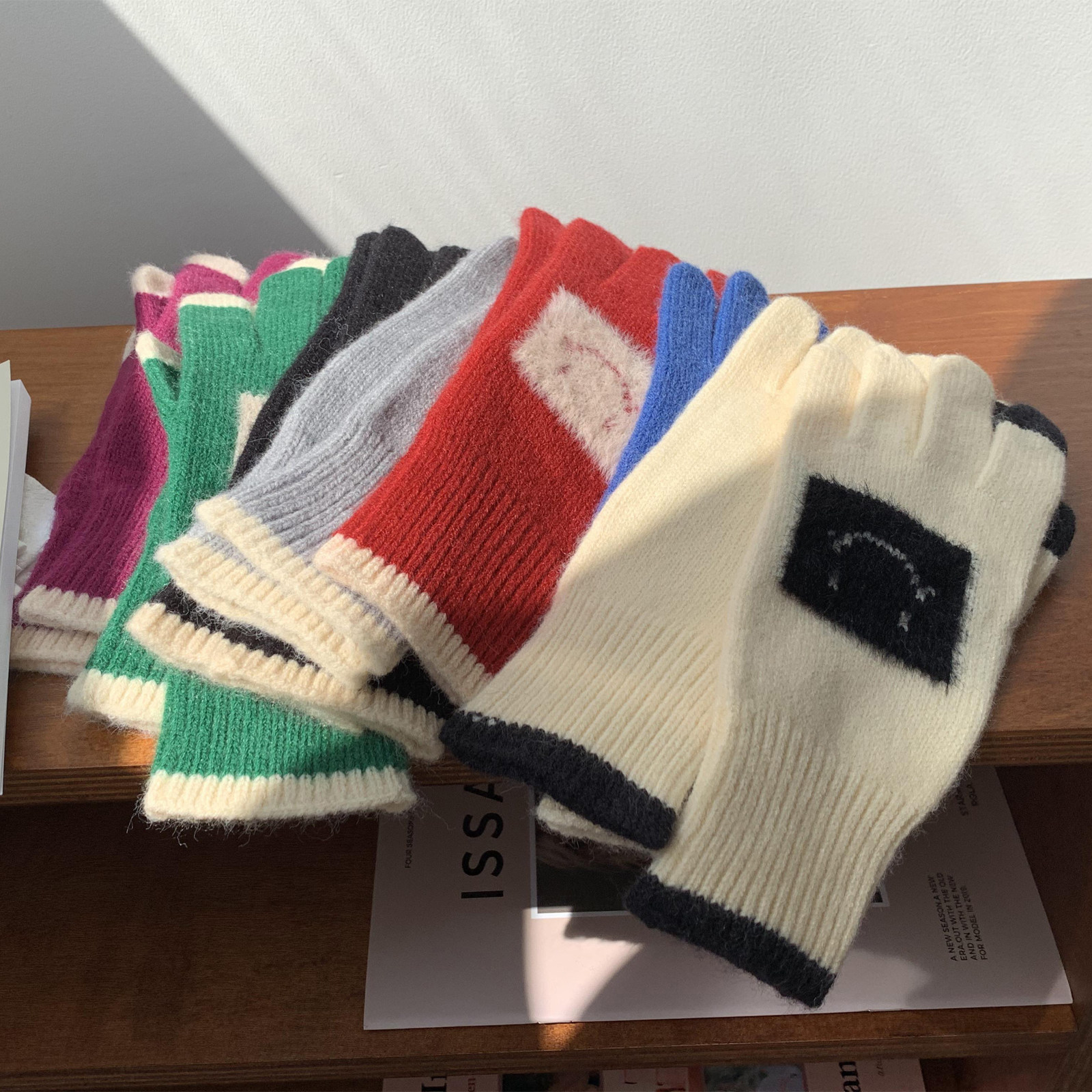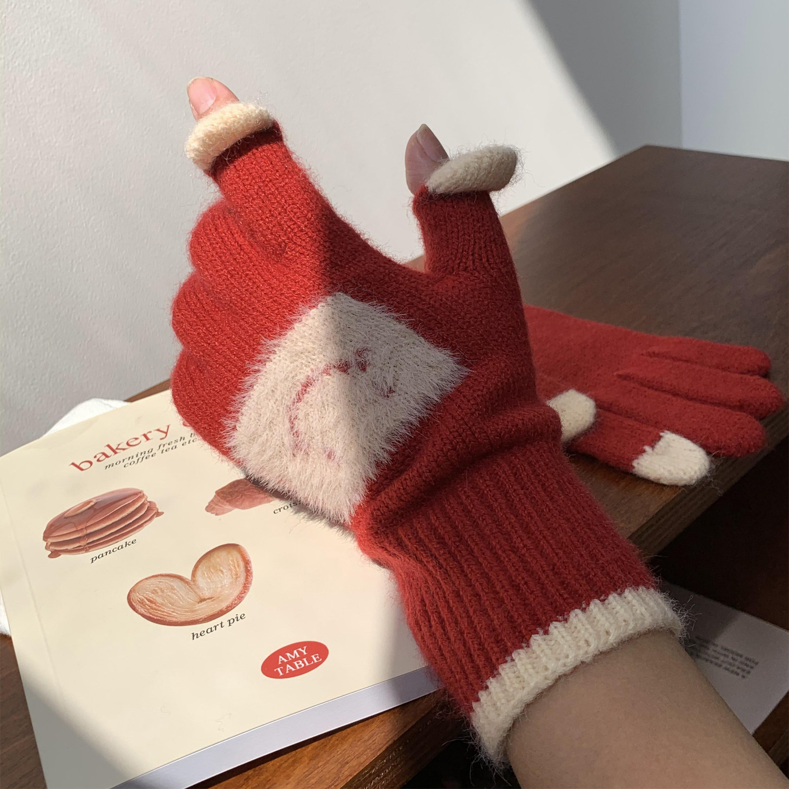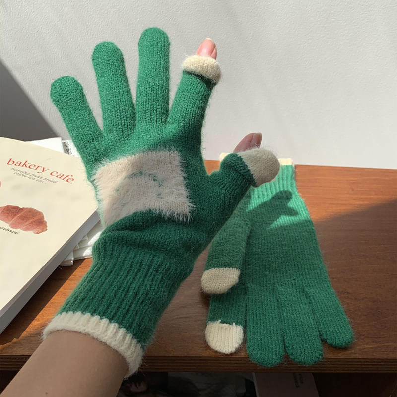 Милые бархатные трикотажные перчатки, удерживающий тепло шерстяной комплект, плюшевые