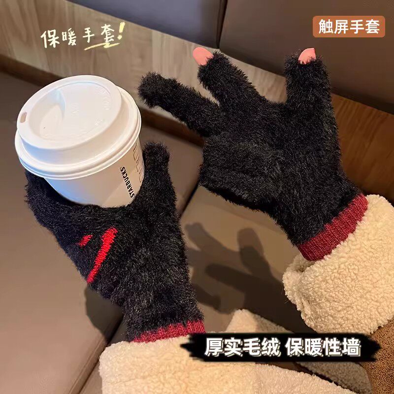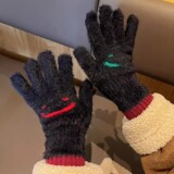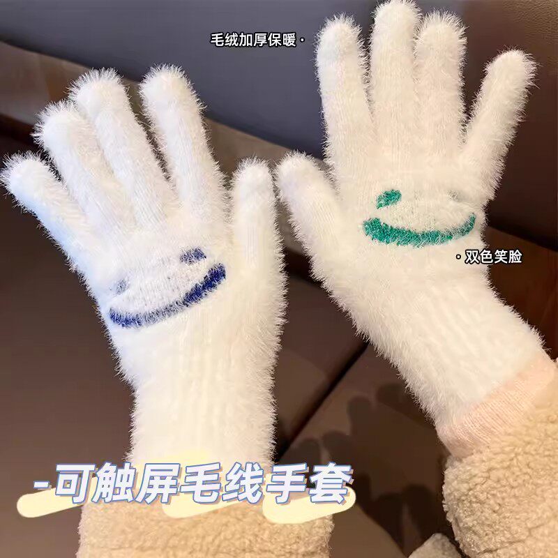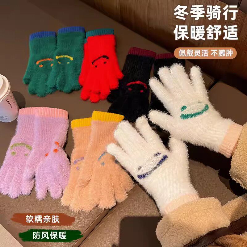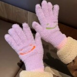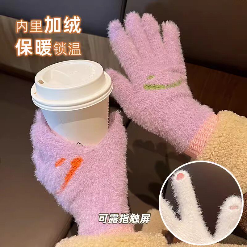 Демисезонные шерстяные перчатки, милый бархатный утепленный комплект для школьников и студентов